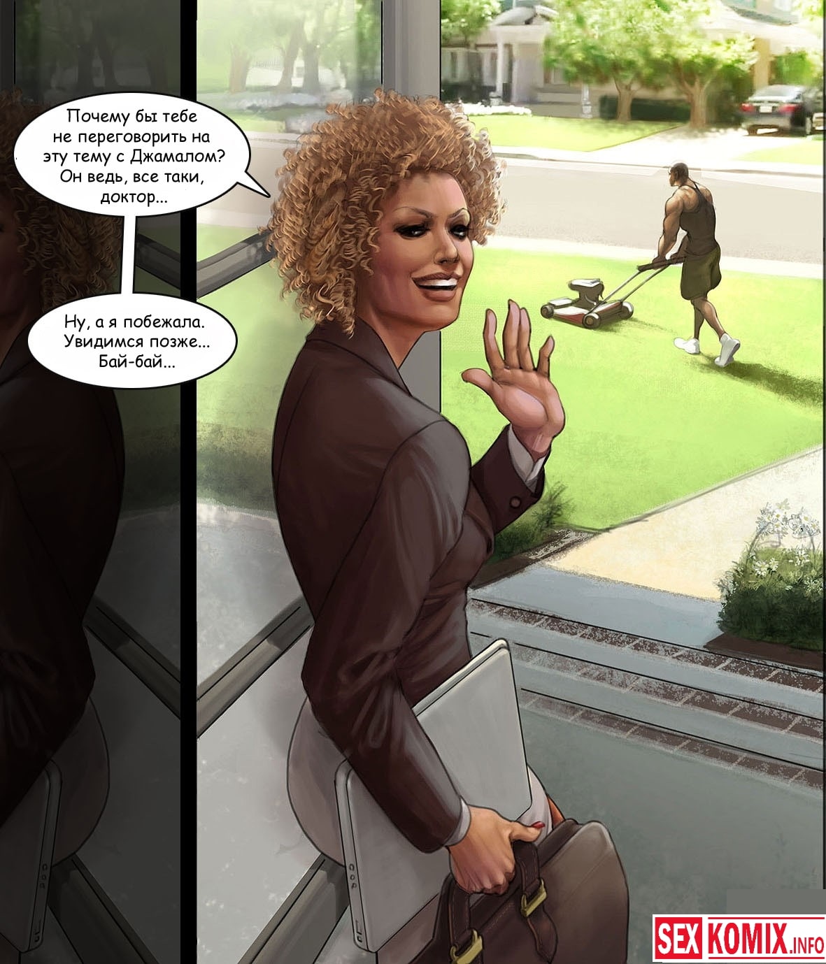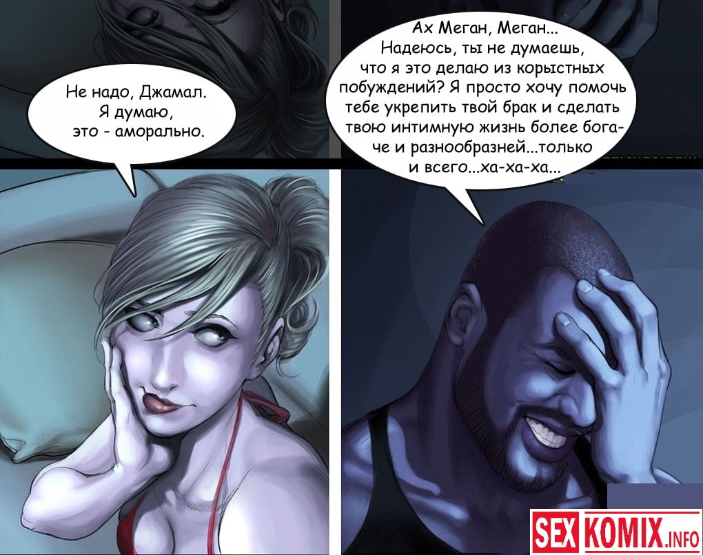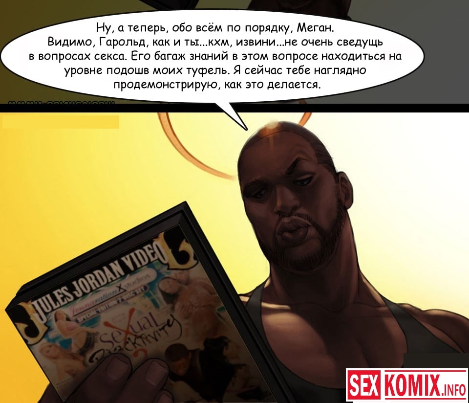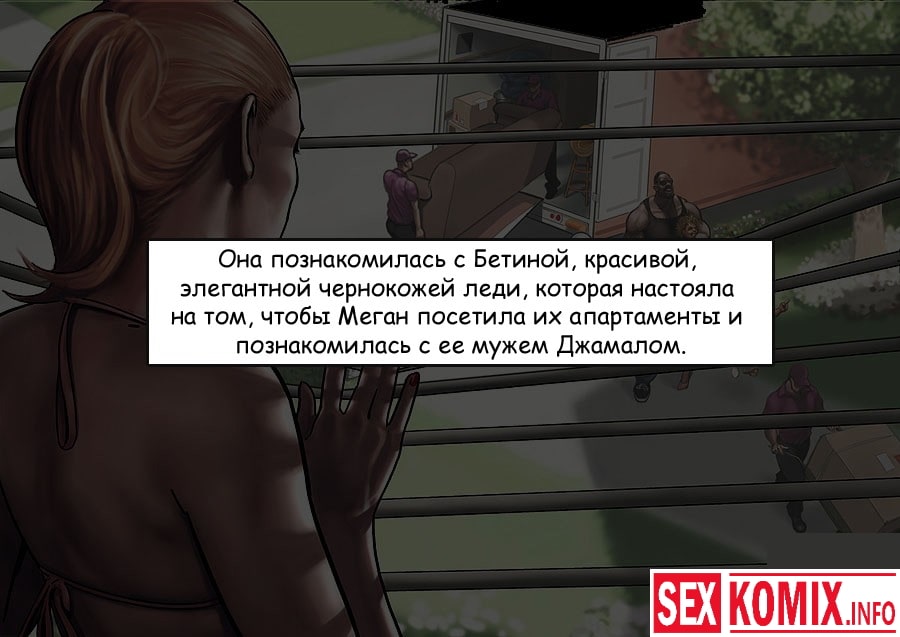 Порно комикс Уроки от соседа. В этом эротическом комикс вы узнаете, что в соседний особняк рядом с домом сексуальной блондинки переезжает чернокожие. Меган идет знакомиться с ними и узнает, что ее черный сосед сексолог. Девушка решает переговорить с ним по поводу семейных проблем и получает эротические советы , и плюс к этому огромный член, которым парень её трахает.