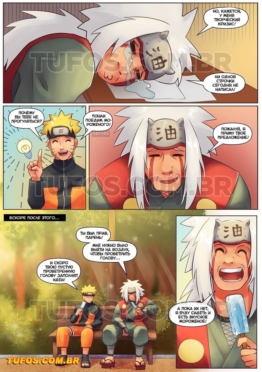 Порно комикс Наруто. Часть 2. Автор эротических книг. Наруто решил посетить своего старого друга, он писатель. Пишет эротические книги для взрослых, но что-то в последнее время в голову ничего не идёт. Наруто предлагает ему немного развеяться, сходив на улицу. Писатель согласился с его предложением, они взяли по мороженому и сели на лавочке. К ним подошли молодые девушки, подружки Наруто, у них тоже было мороженое. Когда мужчина увидел этих красоток, в голове сразу начали появляться идеи для новой книги. Чтобы не упустить музу, он пригласил девушек к себе домой и занялся с ними горячим сексом.