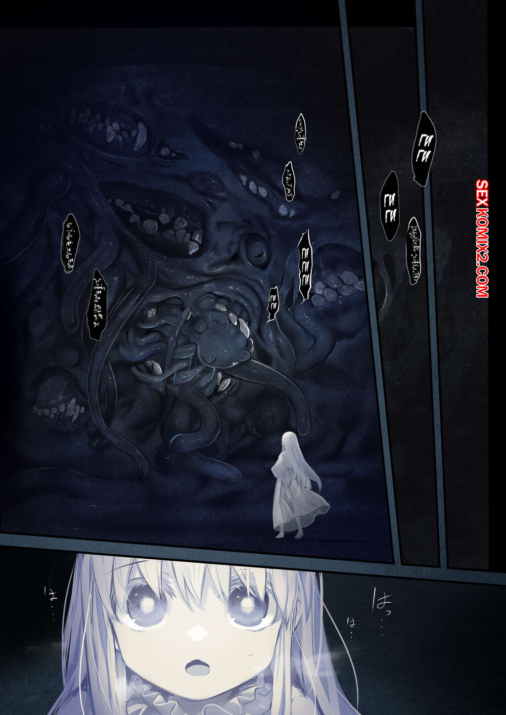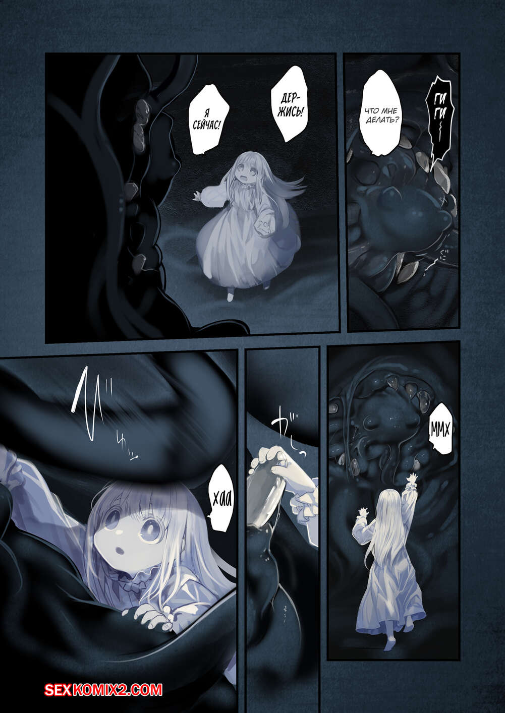 Порно комикс Connect. Shoujo wa Shokushu to Ai o Tsumugu. Kouhen Небольшой монстр с тентаклями ночью оказался в комнате молодой красотки блондинки и решил с ней повеселиться. Он стал ласкать ее шикарное тело, после чего хорошенько ее трахнул во все дырочки.