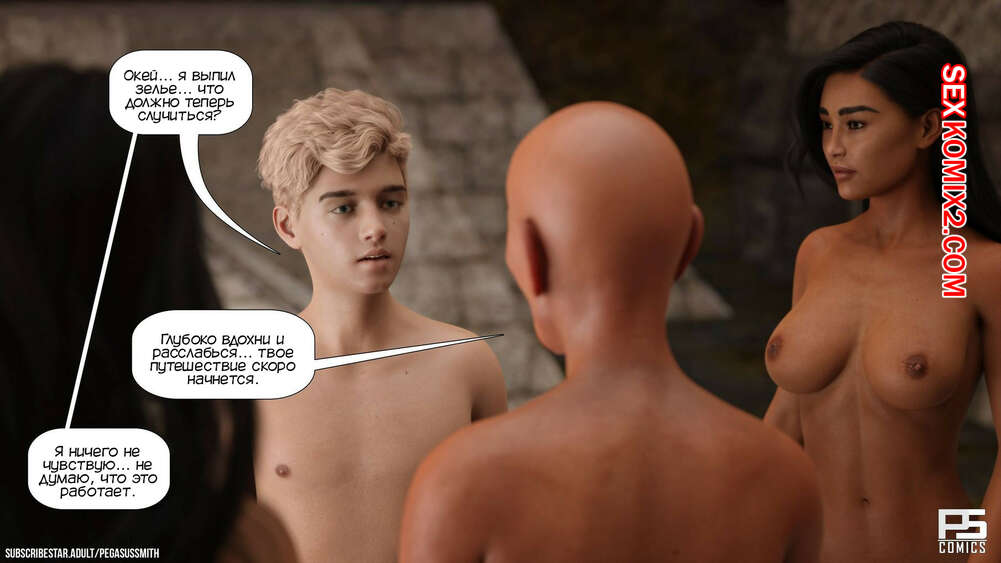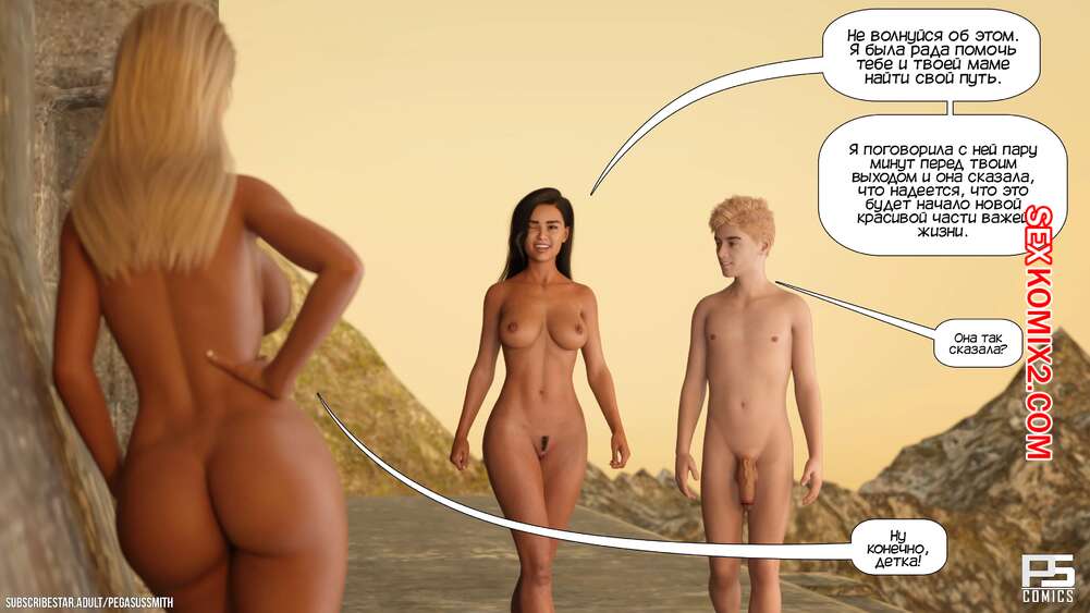 Порно комикс Нагишом. Нудистский курорт. Часть 12. Au Naturel. Pegasus Smith Сисястая милфа повела парня к мастеру, чтобы тот обучил юношу секретам секса. Они встретили подругу милфы Камиллу, которая сама дальше повела парня в старый дворец.