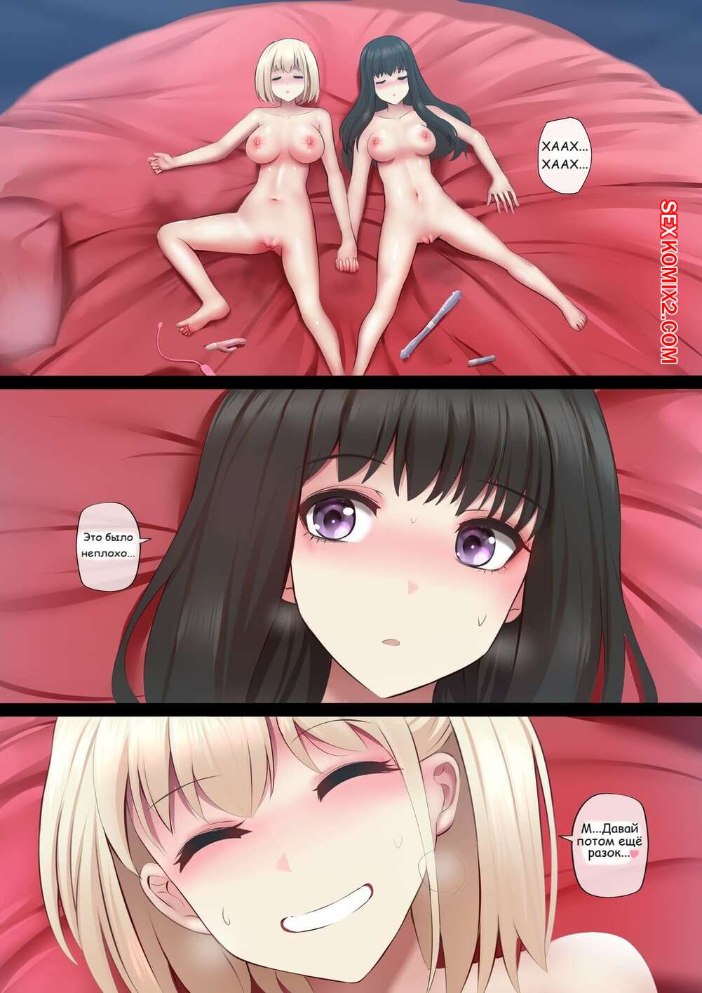 Порно комикс Наша особенная тренировка. Futari no Tokubetsu Kunren. Две подруги купала огромный резиновый хуй и устроили ночь тренировок с ним. И конечно учувствовали они в ней вдвоем.