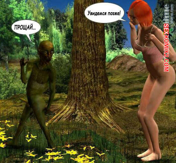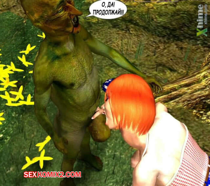 Порно комикс Секс с нечистой силой Горячая рыжая красотка гуляла по лесу и столкнулась там с монстром с маленьким хуем. С помощью магию он увеличил себе хуй и сучка стала у него отсасывать, после чего дала ему себя выебать в задницу.