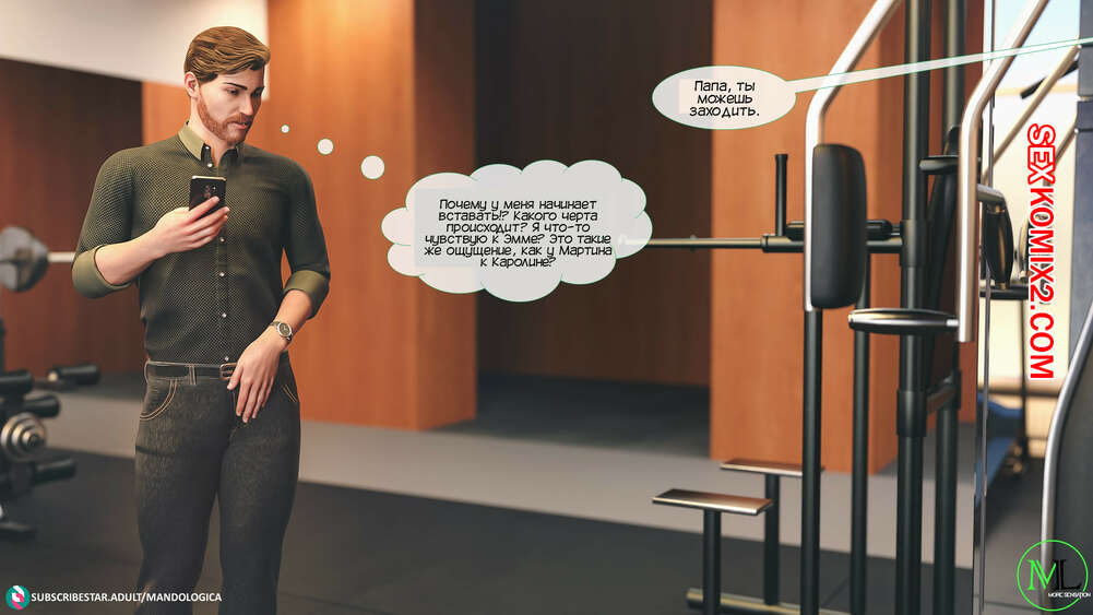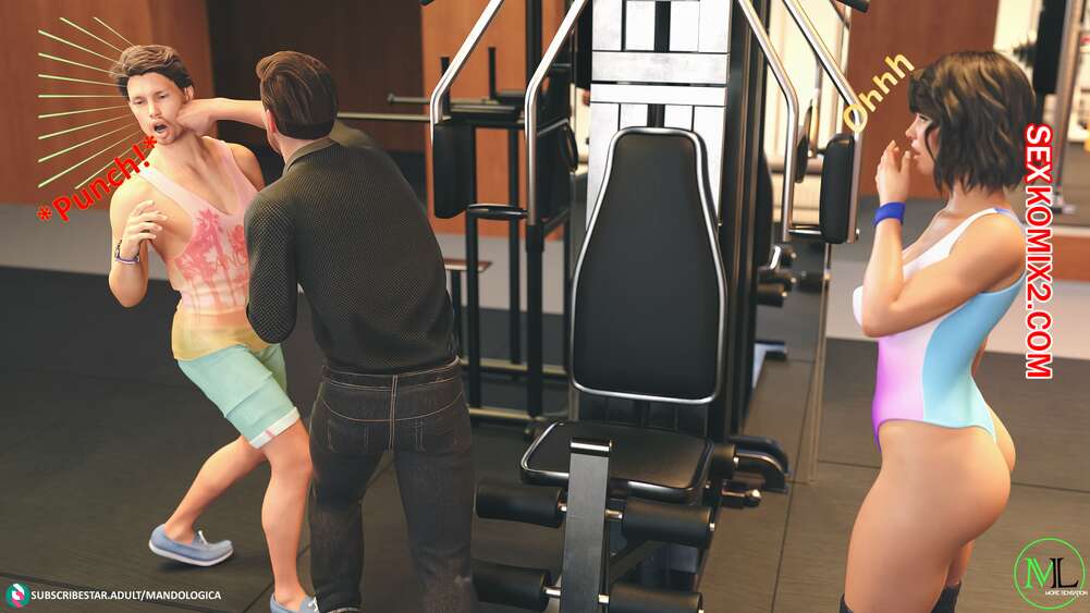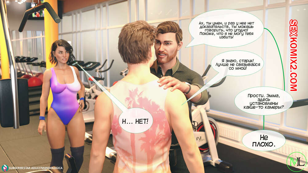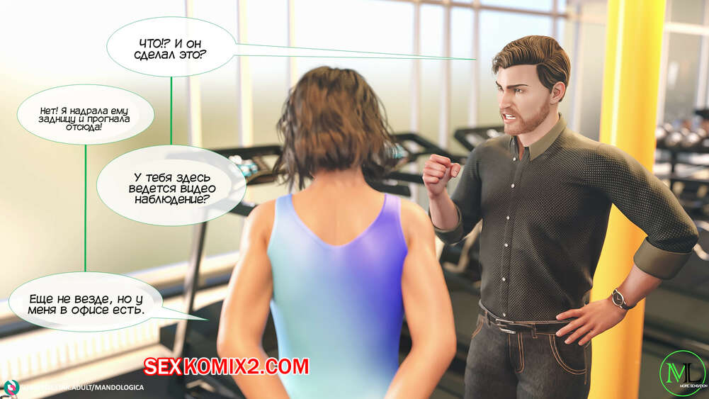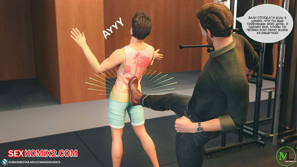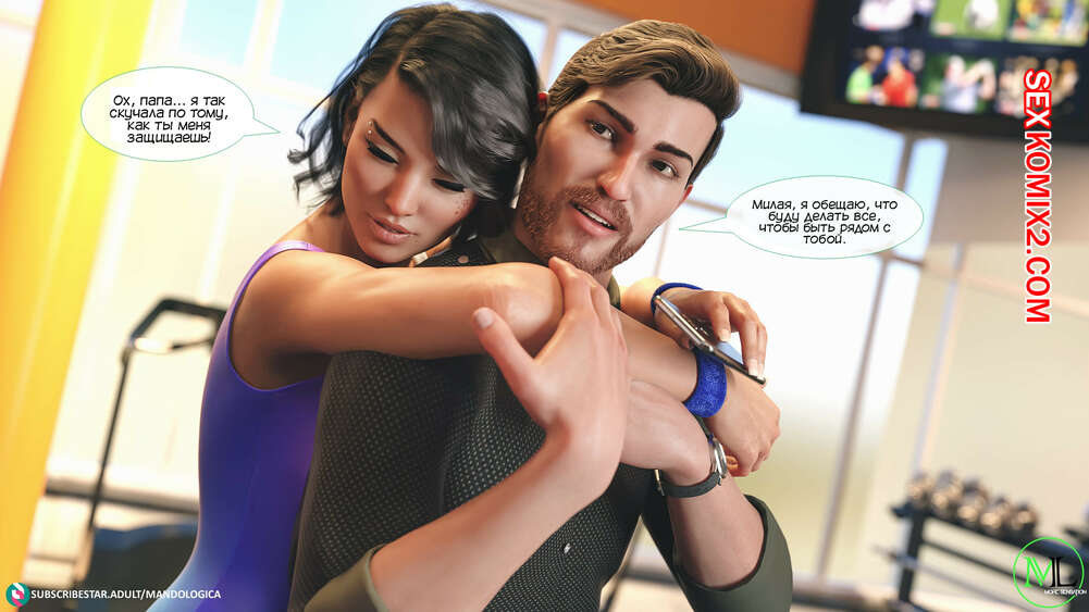 Порно комикс Все вместе. Часть 3. Teamwork. MandoLogica Мужик отправился в фитнес зал, чтобы навестить свою горячую дочку. Красотка была рада встретить папу, но их разговору помешал клиент, который вчера домогался до девушки.