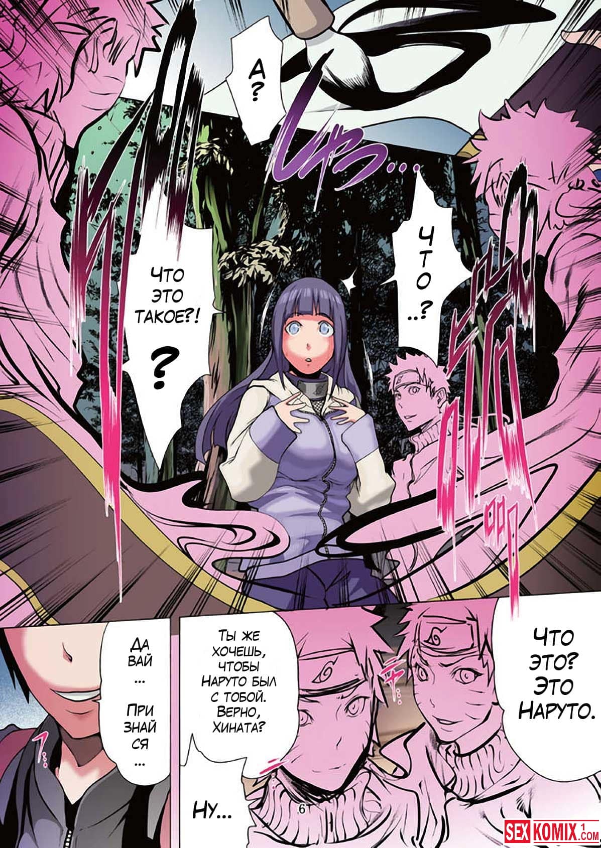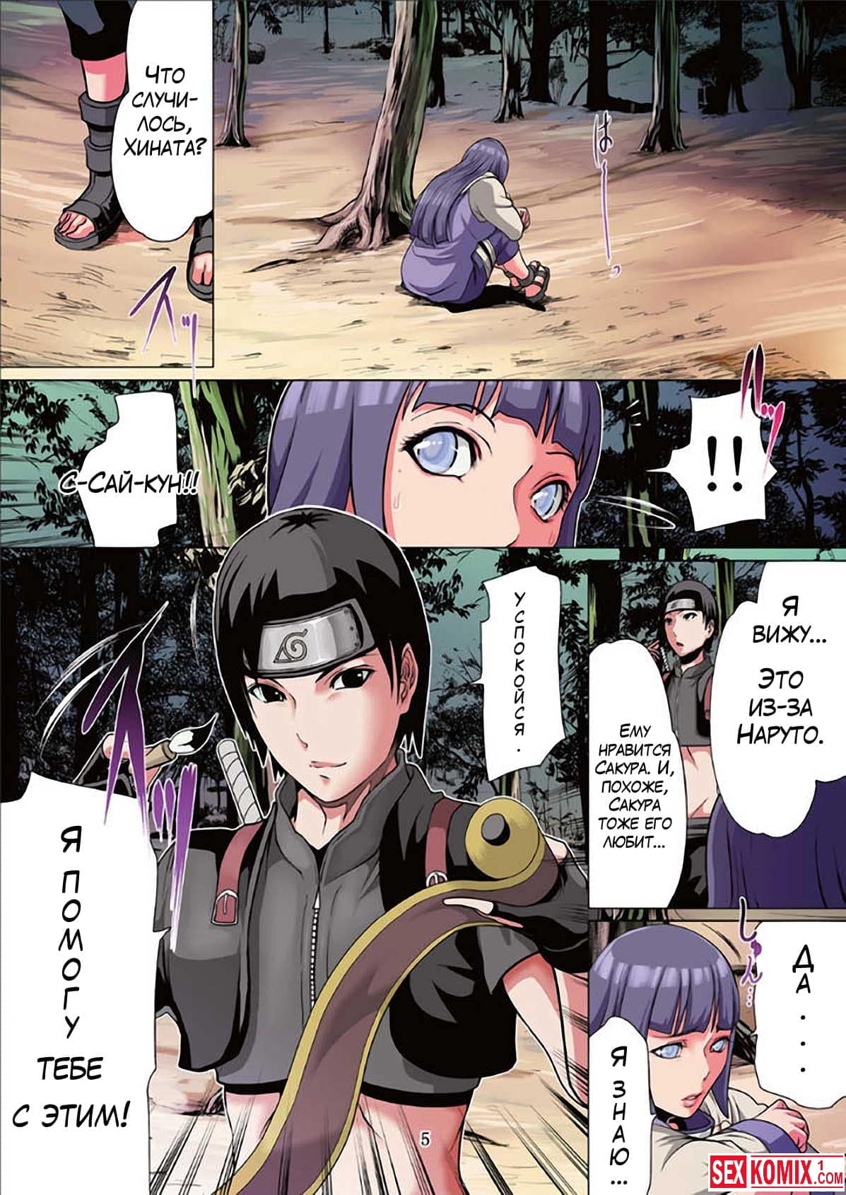 Порно комикс Любовь Наруто. Часть 8. Сакура в расстроенных чувствах убежала в лес, пока она сидела и плакала её выследил Сайкун, он начал домогаться к девушке и она дала себя трахнуть, потому-то подумала, что это Наруто.