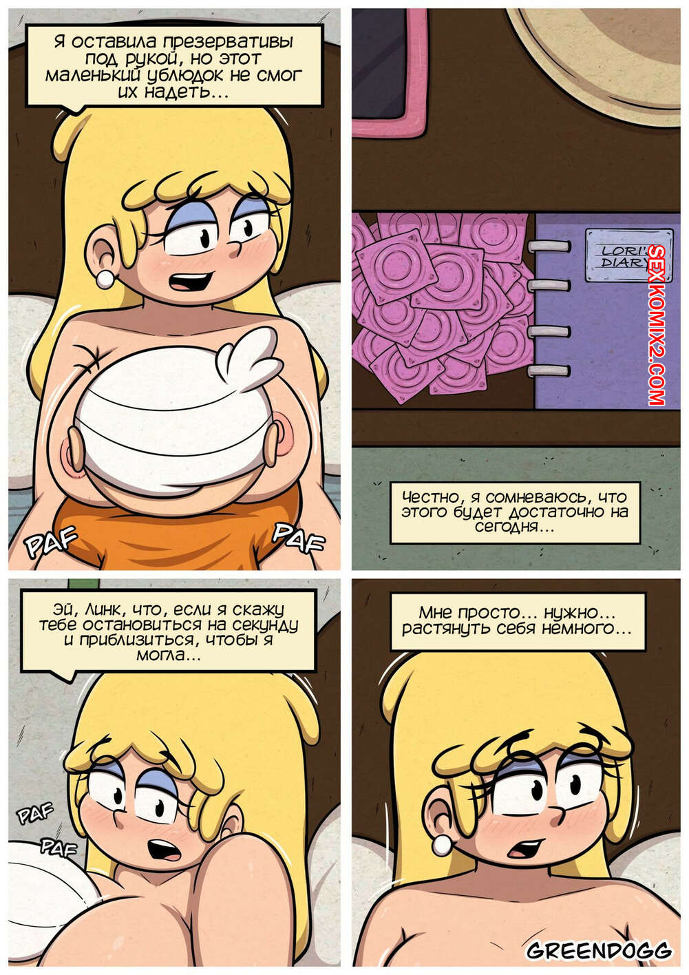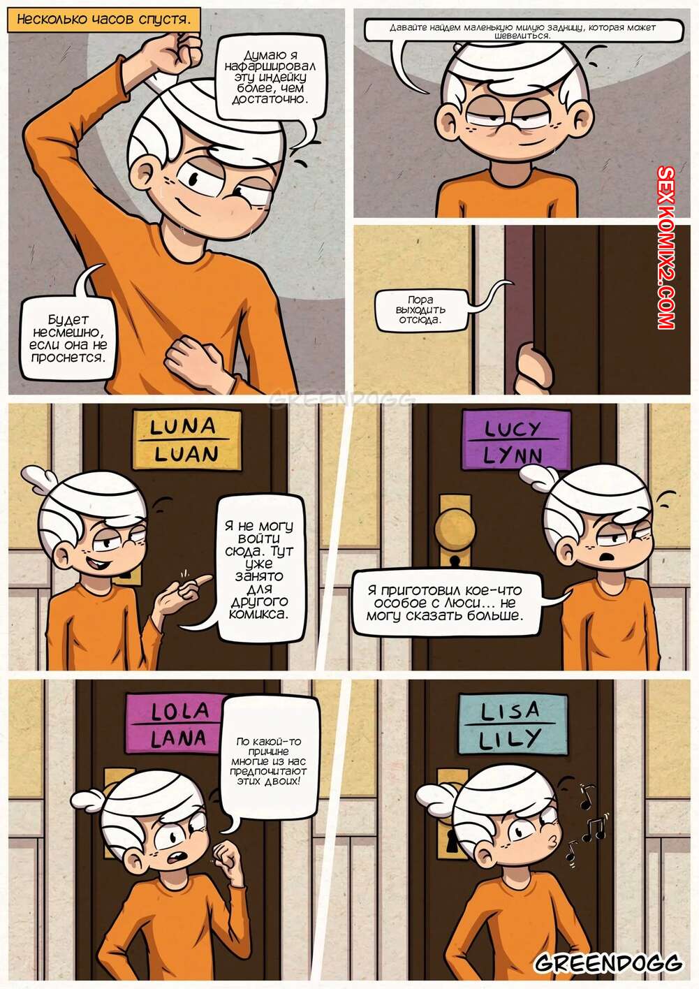 Порно комикс Мой шумный дом. Дом моих снов. Часть 2. The Dream House. GreenDogg. В второй части комикса, Линкольн продолжает "лунатить" по ночам. На этот раз он решил сделать куни своей старшей сестры. А потом трахнуть её.