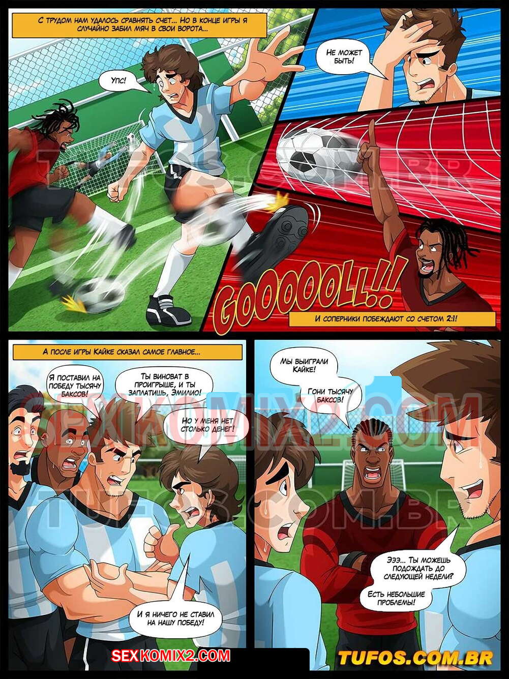 Порно комикс Шкура и её любовник. Часть 4. Sou Corno and Cuckold. Tufos Горячая сисястая блондинка пришла на матч к своему мужу и решила после игры повеселиться с черными парнями. Она отправилась к ним в раздевалку, где стала их соблазнять своим шикарным телом.