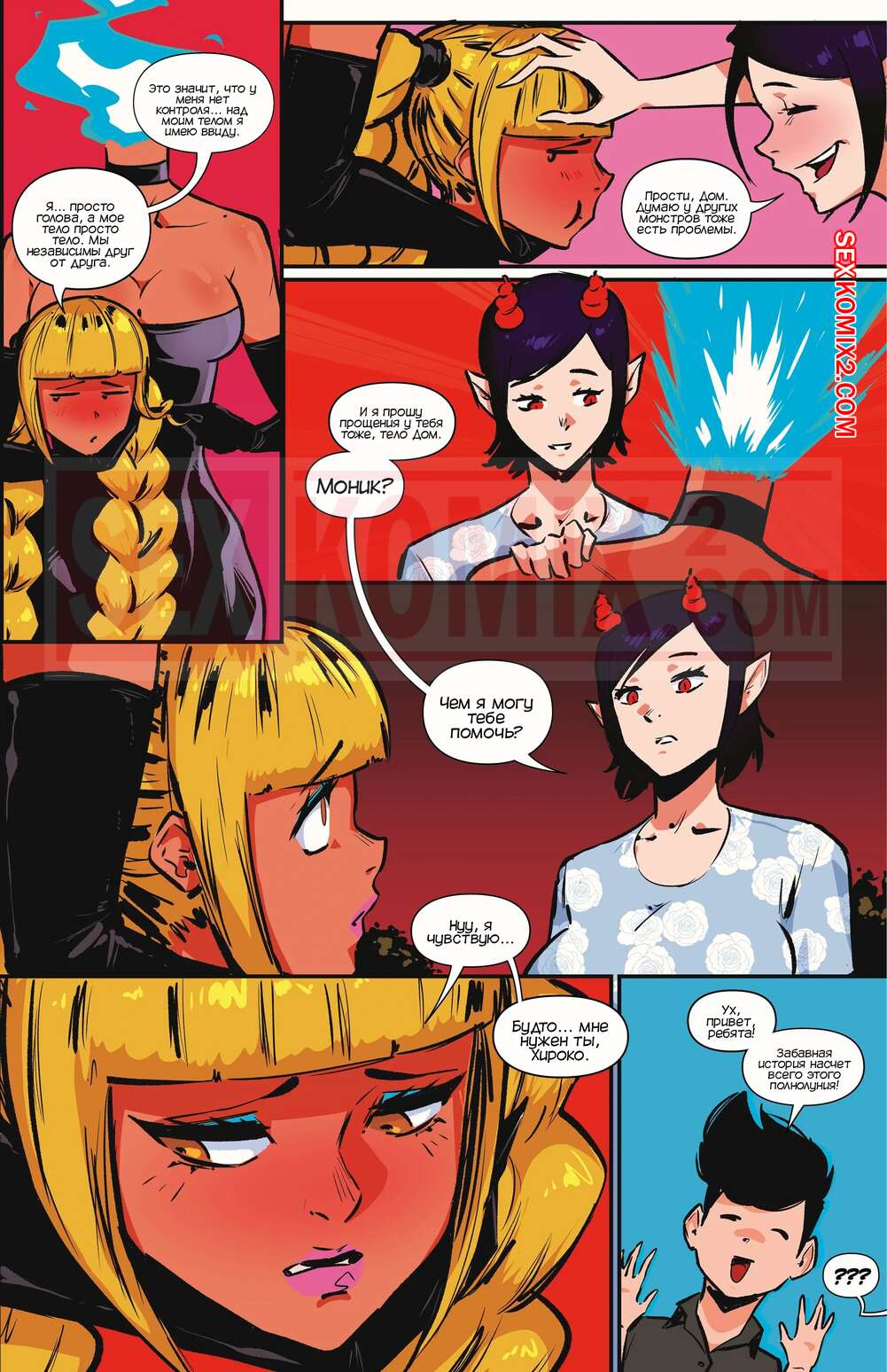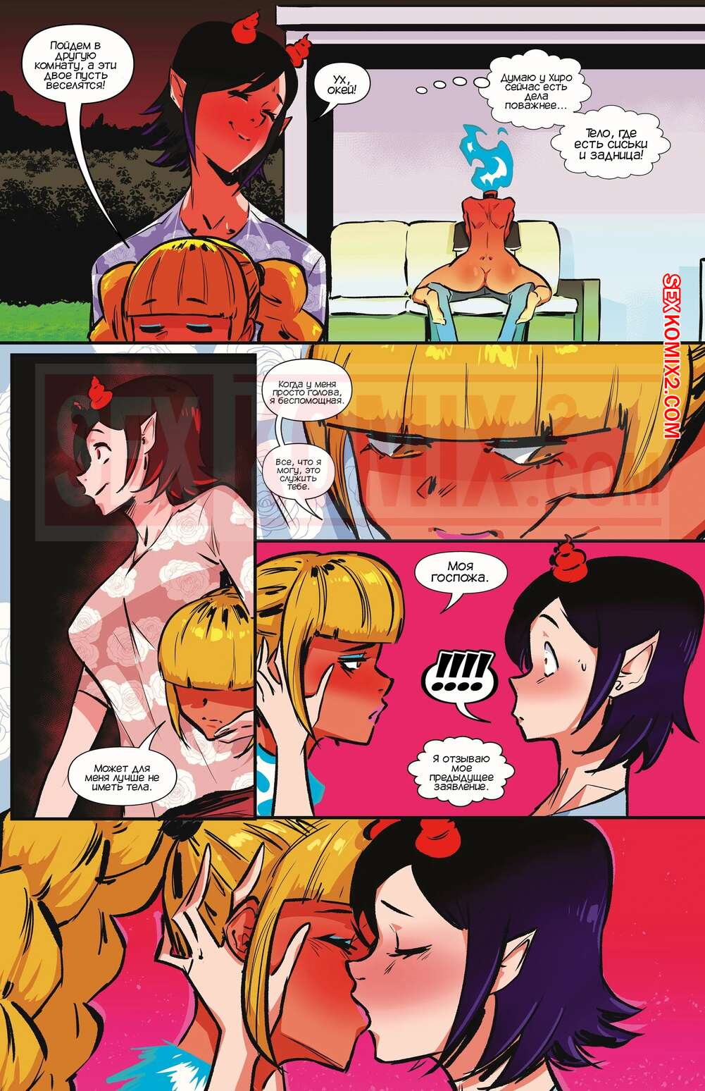 Порно комикс Академия девушек монстров. Часть 17. Monster Girl Academy. Worky Zark Парень с девушкой встретились со своей подругой и отправились к ней домой. Пока парень стал веселиться с безголовым телом подруги, девушка суккуб решила повеселиться с головой.