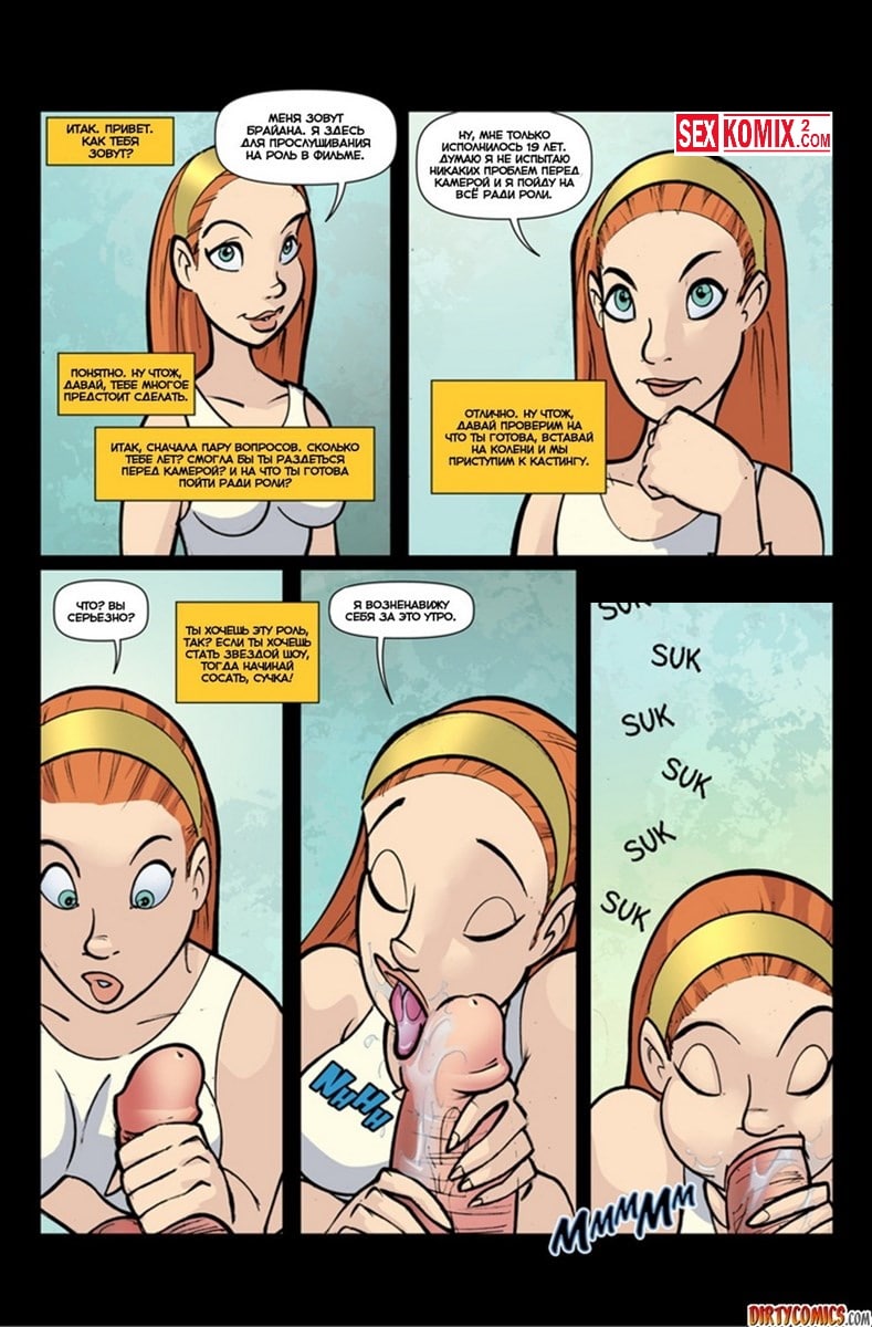Порно комикс Добро пожаловать в порно. Рыженькая девочка пришла на кастинг, её попросили снять всю одежду и показать свое тело. Позже актриса узнала, что этот кастинг в порно фильм, но её это не смутило.