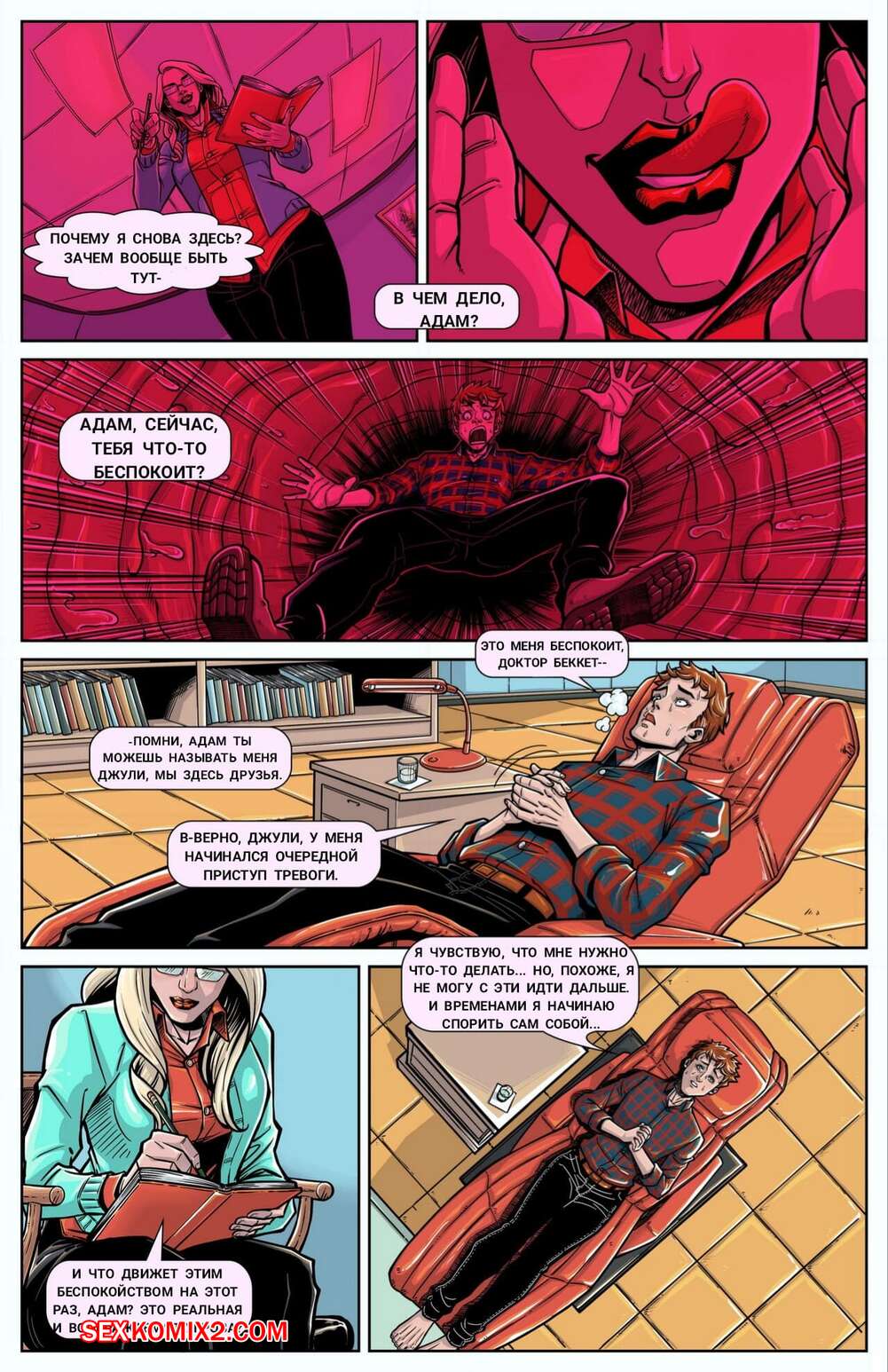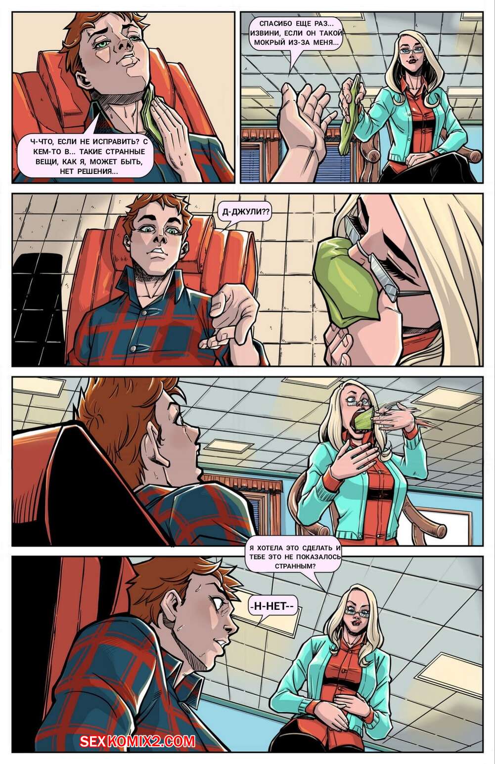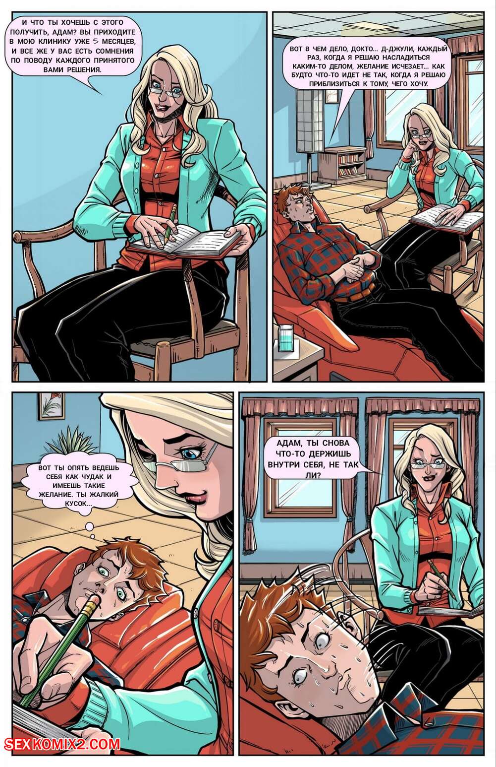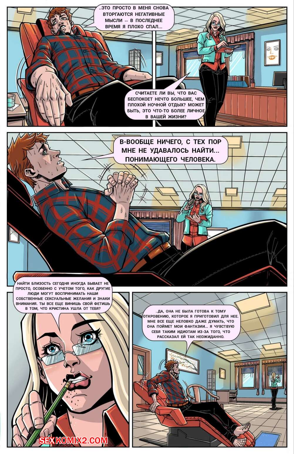 Порно комикс Встреча с доктором Беккет. Meeting with Dr. Beckett. Vorefan Парень пришел на прием к горячей сисястой блондинке, чтобы обсудить свои проблемы. Но у красотки были другие планы, она оголила перед ним свои сиськи, после чего полностью его в себя заглотила.