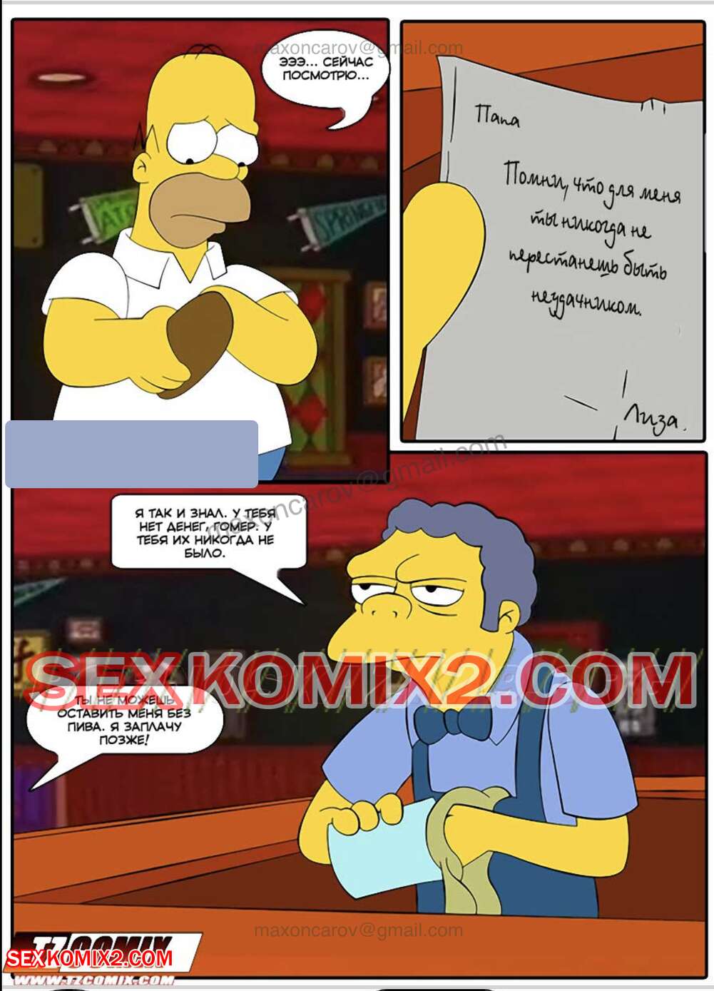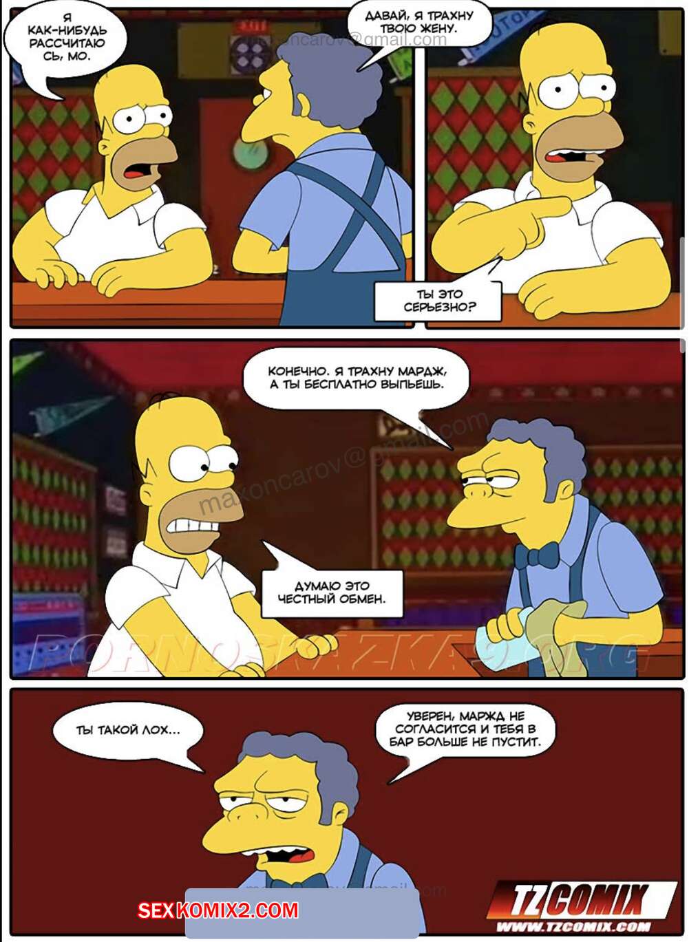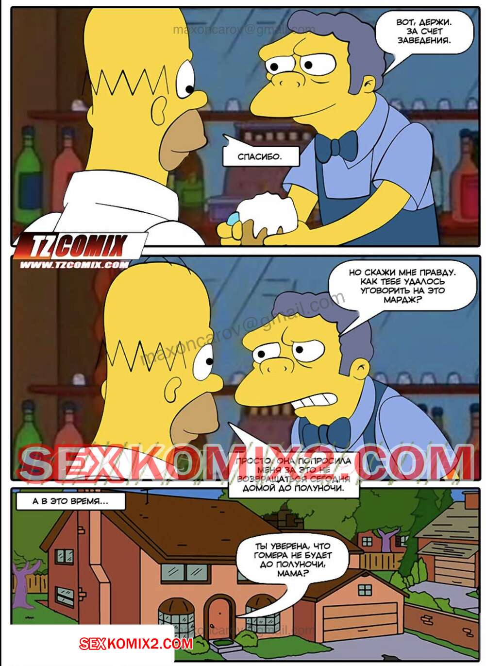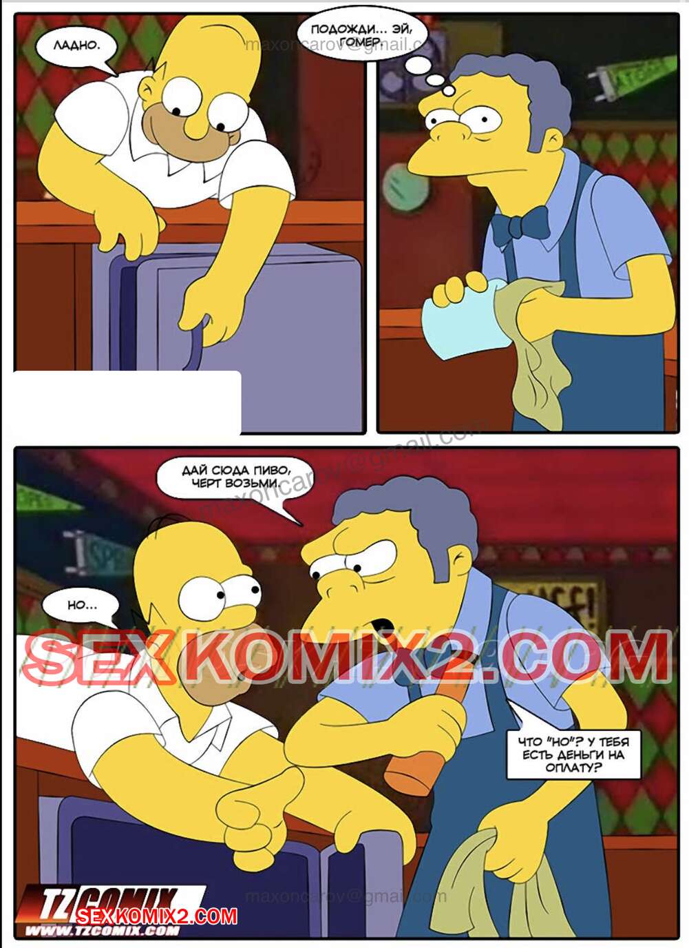 Порно комикс Симпсексы. Часть 0. Расплата за пиво. HQPorno TZComiX Сисястая милфа Мардж хотела трахаться, поэтому она отправилась в бар к другу своего мужа. Красотка разделась перед ним и стала сосать его большой хуй, после чего дала ему себя выебать.