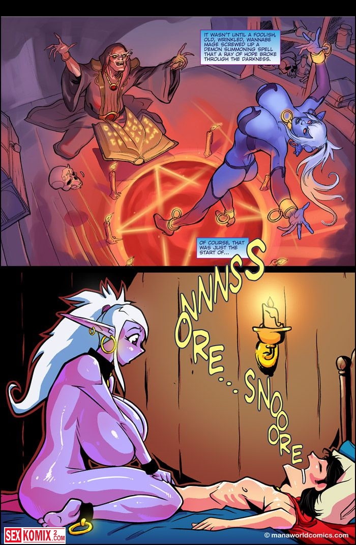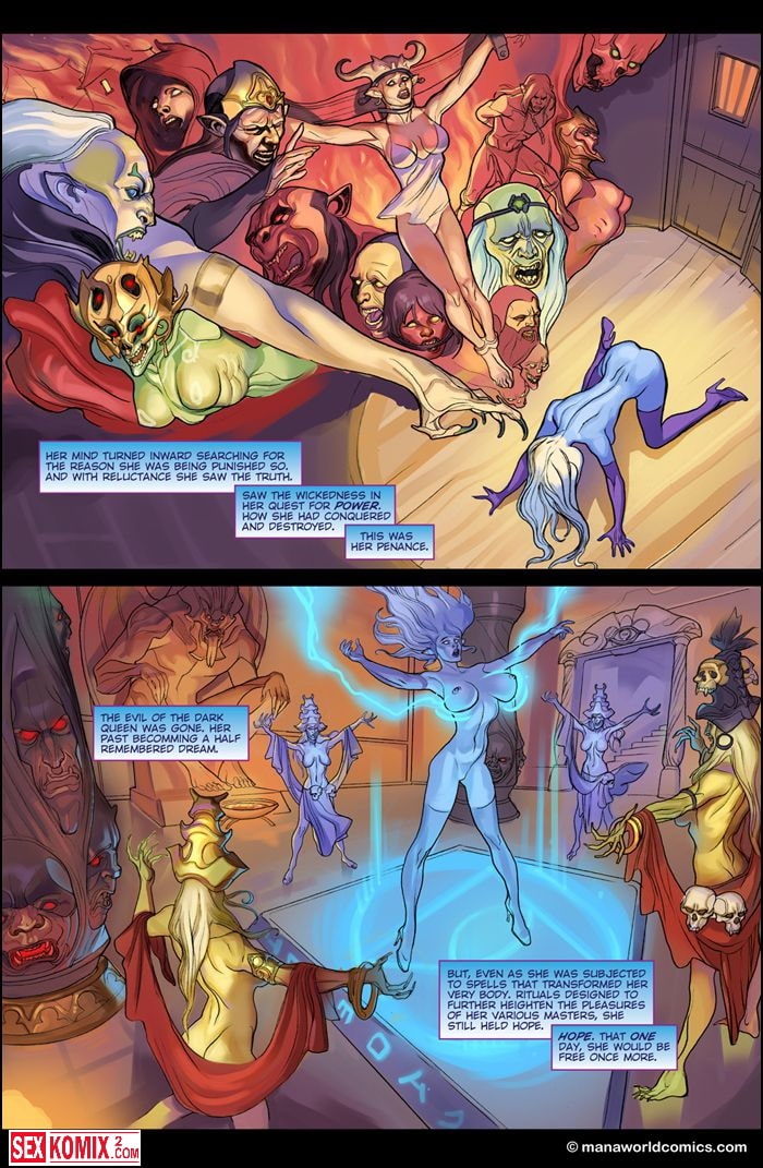 Порно комикс Мир Маны. Часть 6. Откровения. Английский. Сексуальная эльфийка после бурной ночи с капитаном корабля проснулась утром. Вечером он рассказал её о своих приключениях и девушка решила поделиться своей жизнью. Она поведала о своей прошлой жизни в другом измерении.