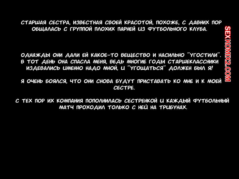 Порно комикс Я наблюдал, как сестру насиловали хулиганы, пока та была в отключке Хулиганы набросились на горячую сисястую брюнетку и вырубили ее. Они раздели ее и стали трахать ее во все дырочки, после чего обкончали ее и оставили одну.