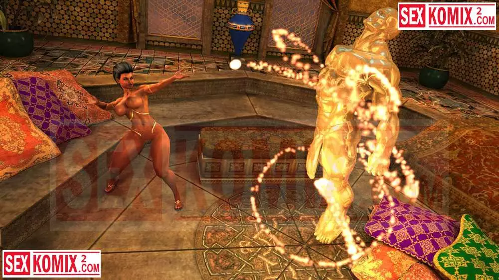 Порно комикс 3Д Арабская ночь. Люсиль. Девушки древнего Египта тоже очень хотели трахаться. Эта горячая девушка с огромными титьками и сочной задницей призвала джина и занялась с ним сексом.