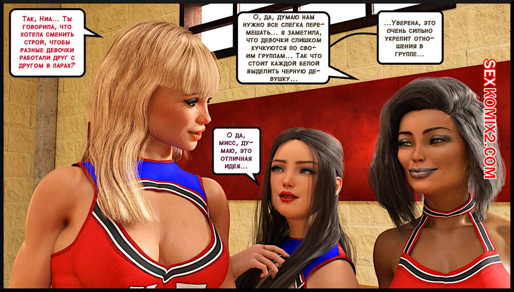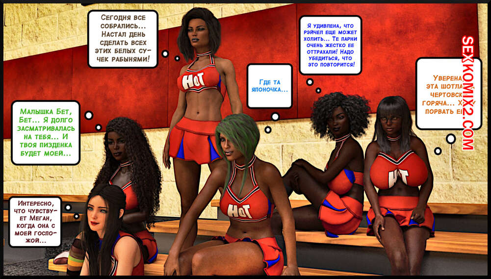 Порно комикс Командные Игроки. Часть 4. Team Players. Alison Hale Горячие сисястые красотки были очень возбуждены и решили повеселиться со своими темнокожими дружками. Сучки разделись и стали сосать большие хуи парней, после чего дали им себя выебать.