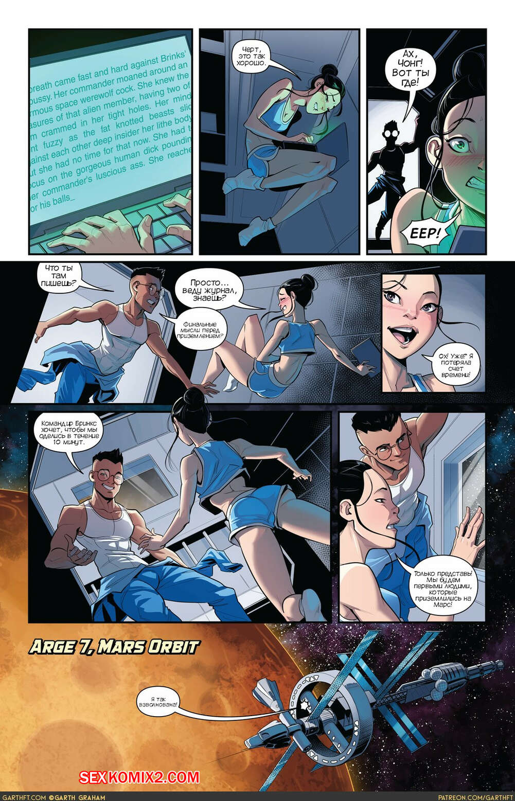 Порно комикс Поликул Марса. A Polycule of Mars. TemporalWolf Группа космонавтов из двух сексуальных девушек и парня отправились на Марс. Во время полета они немного потрахались, после чего приземлились на новую планету, где их встретили местные жители.