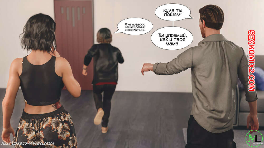 Порно комикс Все вместе. Часть 9. Teamwork. MandoLogica Мартин остался наедине с Эммой. Он очень переживает изза того, что его мамка собралась на деловую встречу с клиентом, где займется с ним сексом. Стивен пытается остановить жену, но ей абсолютно все равно на его слова..