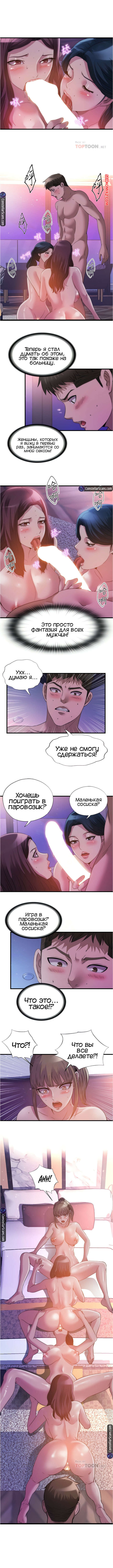 Порно комикс Жизнь бьет ключом. Части 97 и 98. Water overflow Красотка осталась наедине с парнем и пригласила трех проституток, чтобы воссоздать ситуацию в больнице. Девушки стали ублажать парня, после чего занялись страстной еблей.