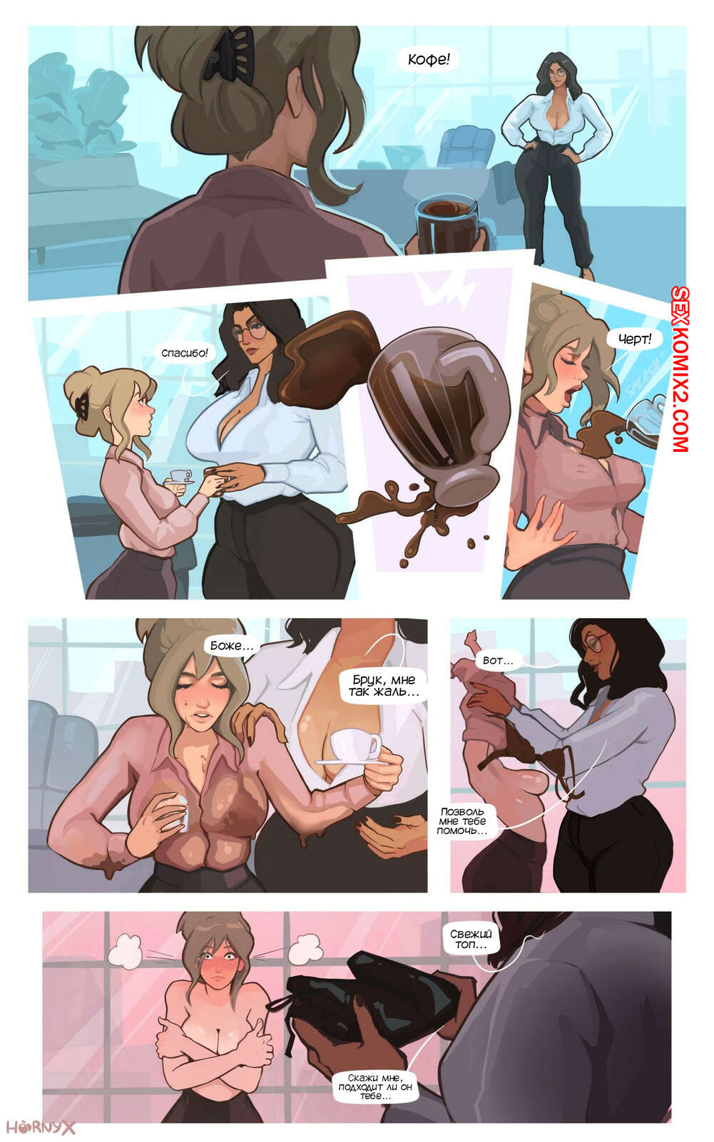 Порно комикс Босс моя мама. Boss Me Mommy. Hornyx Молодая горячая брюнетка пришла в офис на новую работу ассистенткой начальницы. Милфа босс пригласила девушку к себе и стала ее соблазнять, чтобы хорошенько ее выебать.