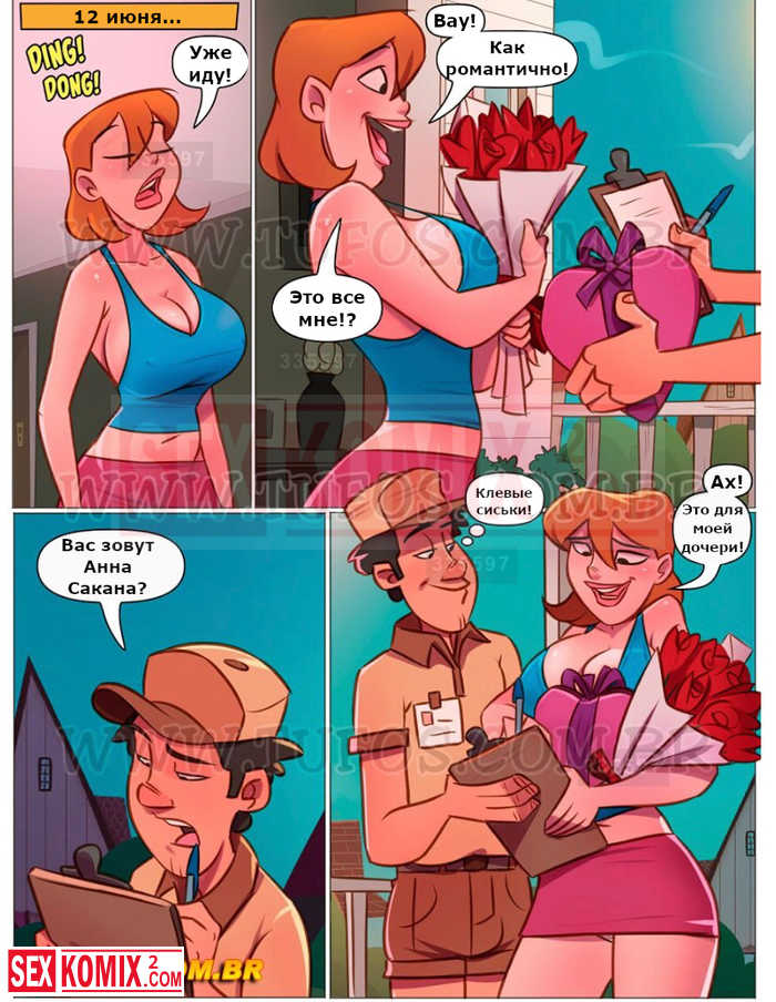 Порно комикс Похотливая семейка. Часть 85. День святого Валентина. Эпизод 1. На день всех влюбленных муж решил сделать сюрприз своей жене и пошёл за конфетами в виде сердечка.