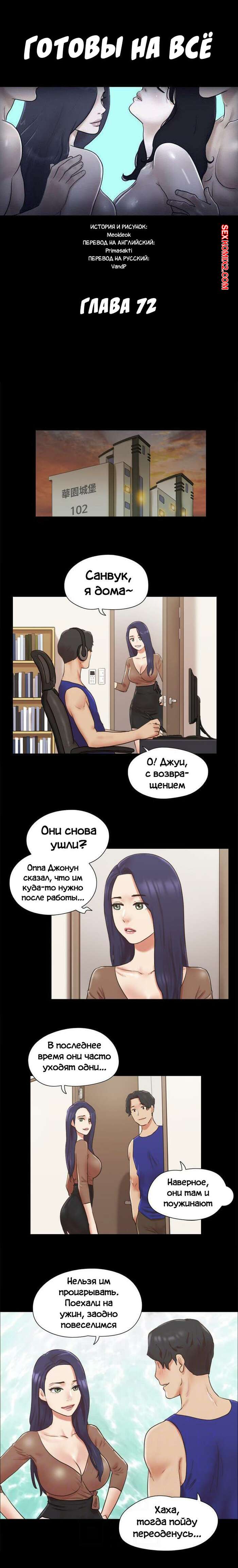 Порно комикс На все согласные. Части 71 и 72 и 73. Everything Is Agreed Горячая сисястая брюнетка очень возбуждена и хочет трахаться. Она разделась перед своим дружком с большим хуем и стала хорошенько у него отсасывать, после чего дала ему себя выебать.