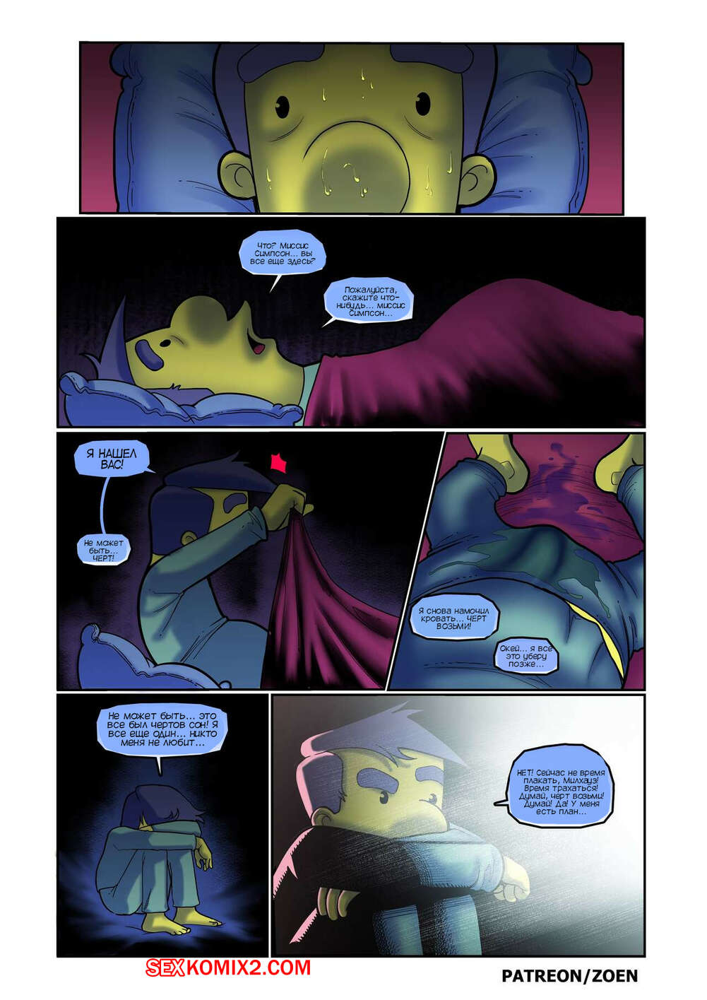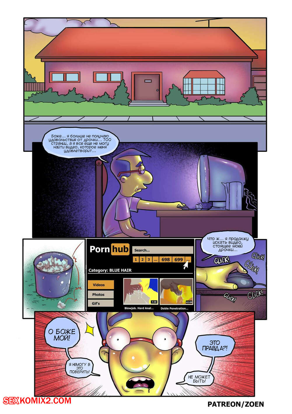 Порно комикс Симпсоны. Мать моего лучшего друга. Часть 1. The Simpsons. Zoen Милхауз лег спать после дрочки и ему стала сниться горячая мамка его друга. Красотка стала сосать большой хуй парня, после чего дала ему себя выебать и кончить ей в задницу.