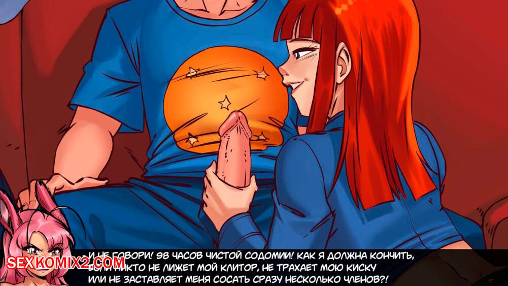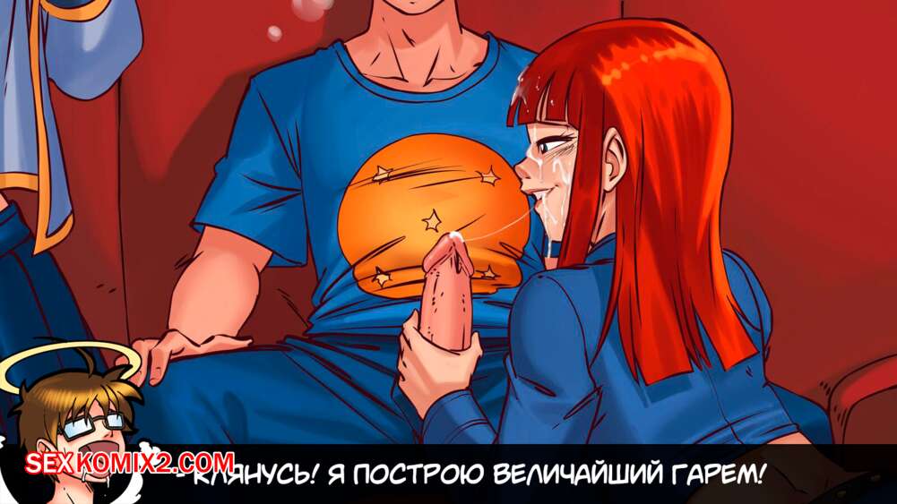 Порно комикс Герои гарема. Часть 2. Harem Heroes Горячая рыжая красотка была очень возбуждена и решила повеселиться с молодым парнем. Красотка встала на колени перед парнем и стала сосать его большой хуй, получая огромное удовольствие.