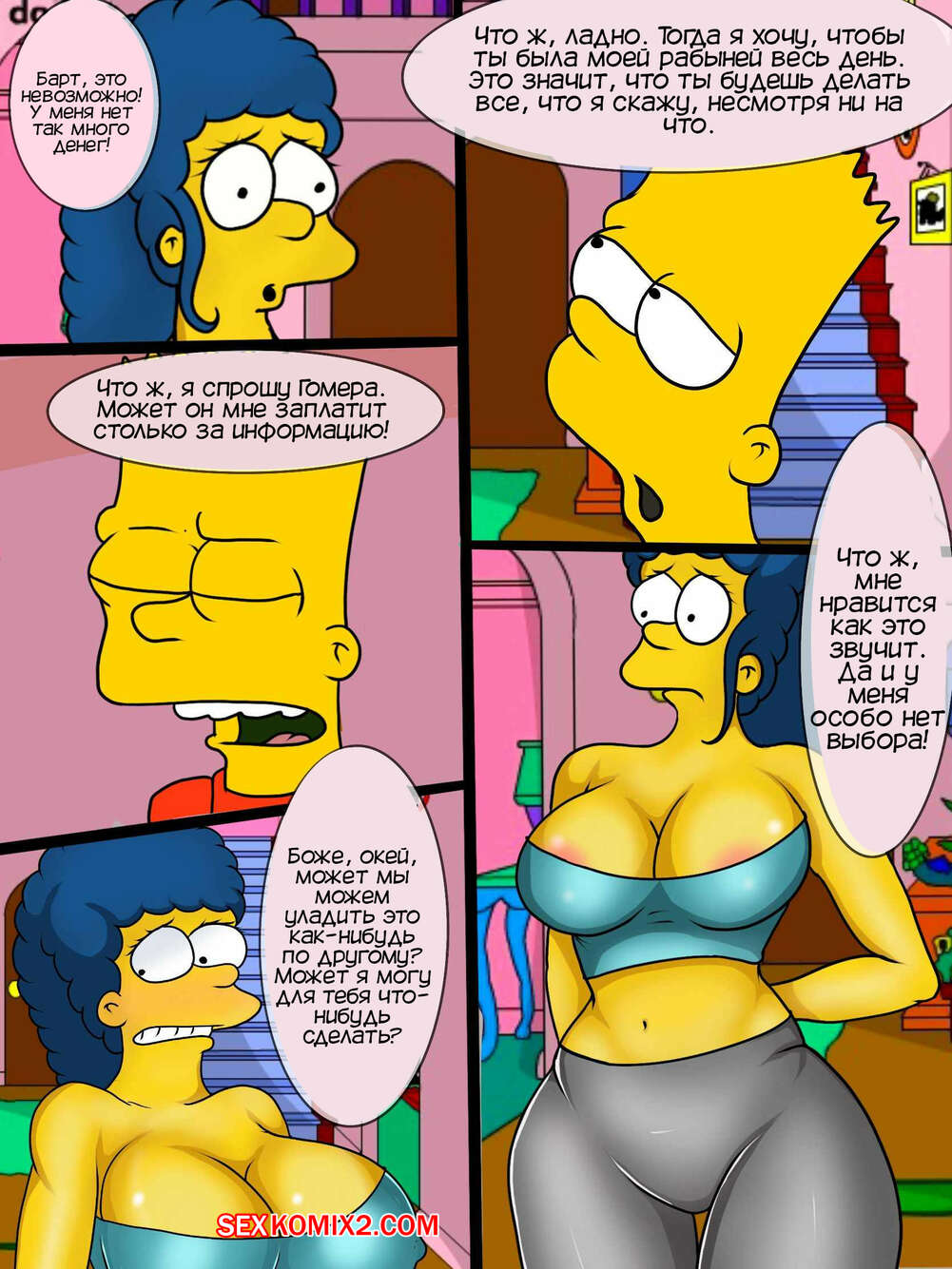 Порно комикс Симпсоны. Мать мой новый раб. Mother My New Slave. Bobs200 Сисястая милфа Мардж отправилась на встречу с парнем, чтобы хорошенько с ним поебаться. Красотку за этим делом спалил ее сын, который стал ее шантажировать, чтобы выебать мамку.