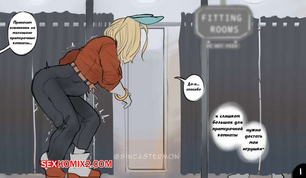 Порно комикс Обычный день. sincastermon Гигантская сисястая блондинка отправилась с магазин одежды, чтобы повеселиться в примерочной. Она достала свой большой дилдо и стала трахать им свою задницу, получая огромное удовольствие.
