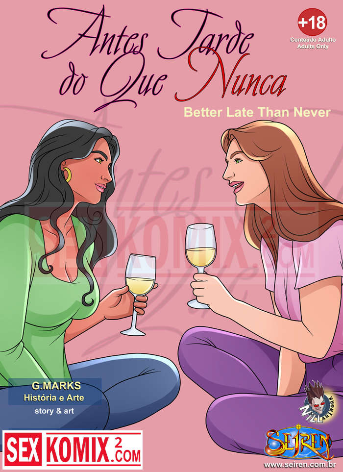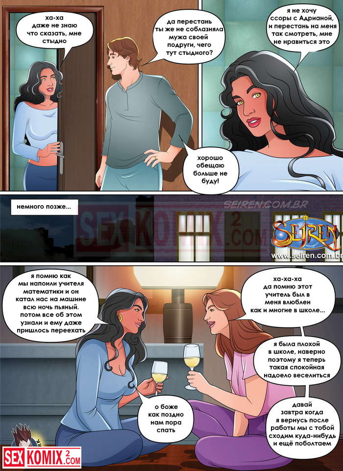 Порно комикс Лучше поздно, чем никогда. В гости к девушке приехала её лучшая подружки и она пошла принять душ. Домой вернулся муж девушки и тоже пошёл в душ. Он увидел голую красотку и возбудился.