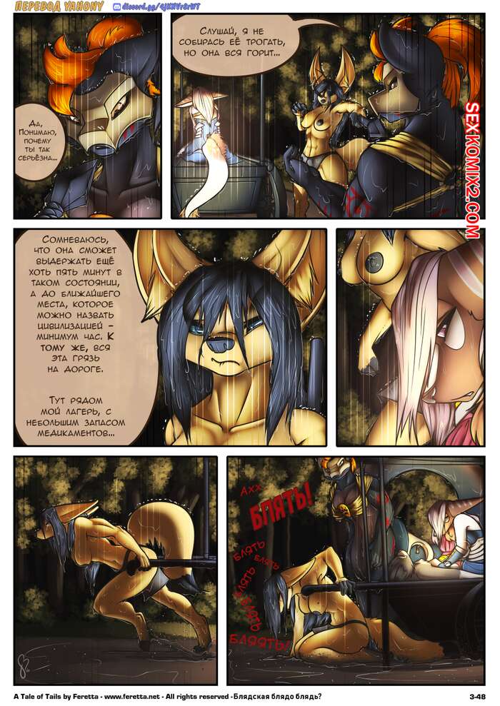 Порно комикс Tail of tails. Глава 3. Заблудшая в кошмарах. Feretta Горячие красотки с большими хуями были очень возбуждены и решили повеселиться со своей сексуальной подругой. Они раздели ее и дали ей отсосать свои большие хуи, после чего выебали ее во все дырочки.