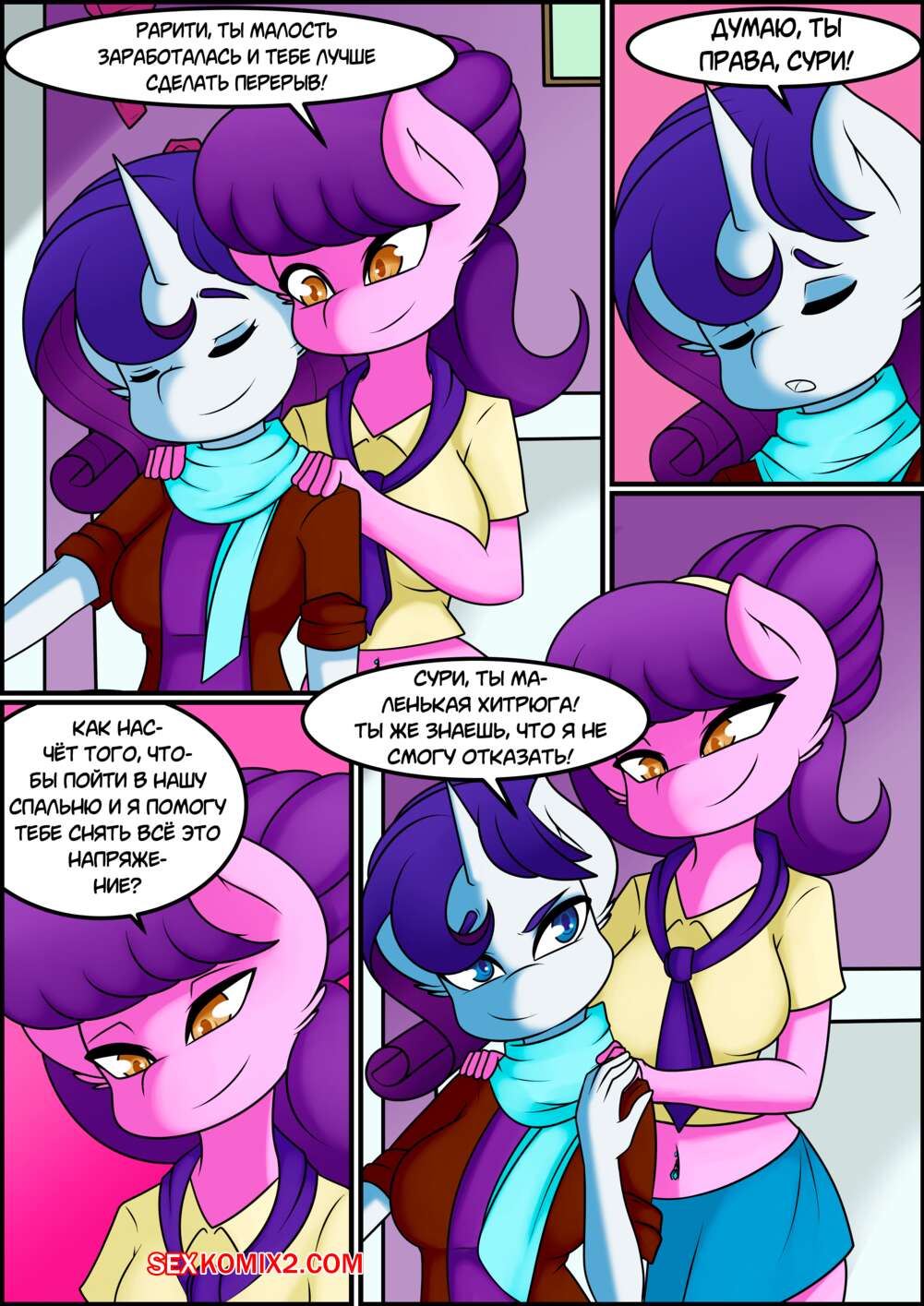 Порно комикс My Little Pony. Рарити и Сури Поломэйр. Caoscore Горячие красотки пони были очень возбуждены и хотели трахаться. Они разделись и стали ласкать друг дружку, после чего занялись страстной лесбийской еблей.