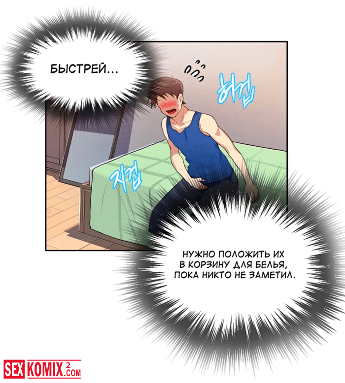 Порно комикс Тайные обучения. Часть 2. Горячая тетя нашла нижнее бельё своего племянника, оно было все в сперме. Она поняла, что он не умеет мастурбировать и решила ему помочь в этом.