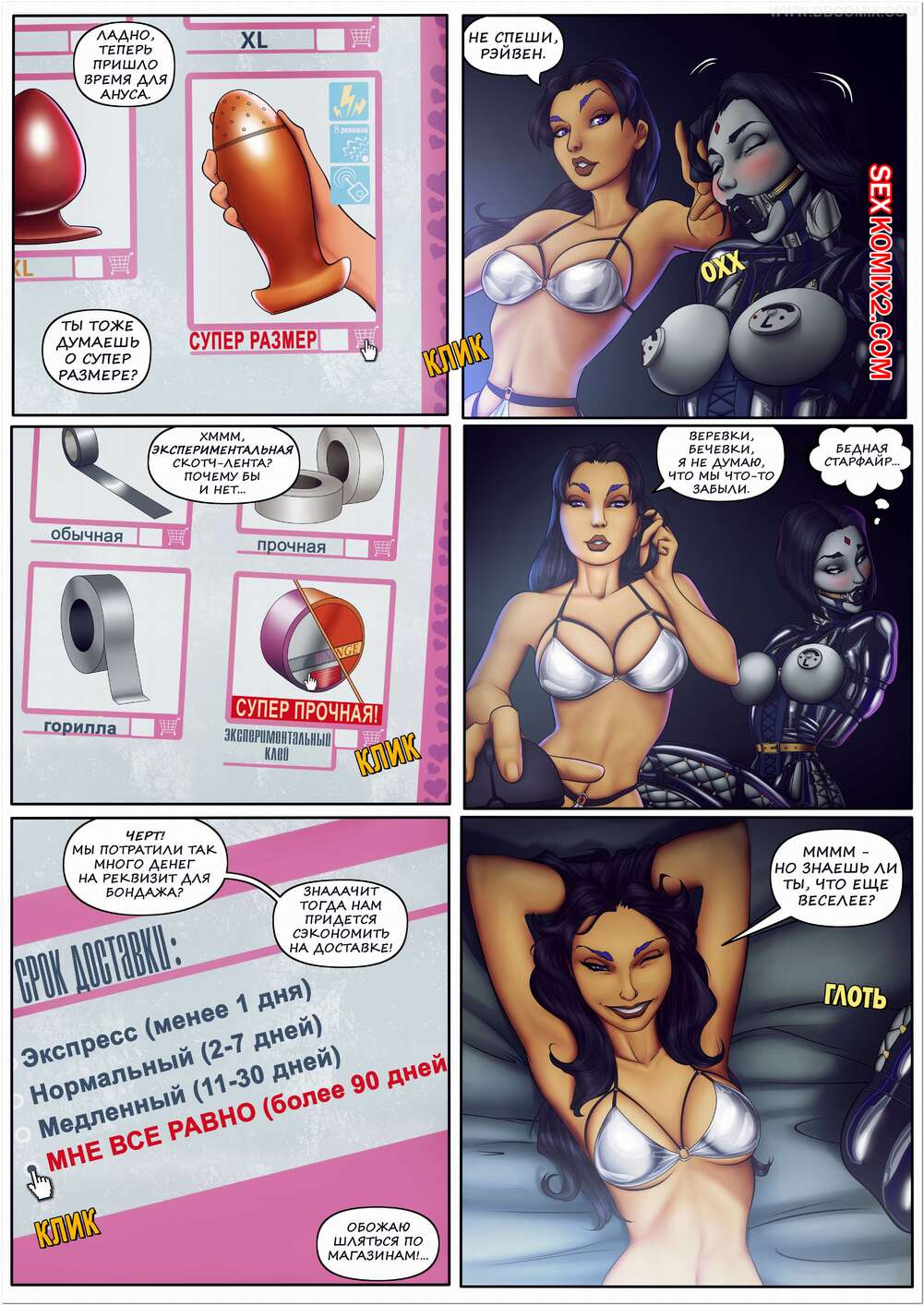 Порно комикс Teen Titans. Юные Титаны Рэйвен. DBComix Горячая сексуальная брюнетка схватила Рейвен и связала ее, чтобы с ней повеселиться. Девушка тоже разделась и дала Рейвен отлизать свою пизденку, получив огромное удовольствие.