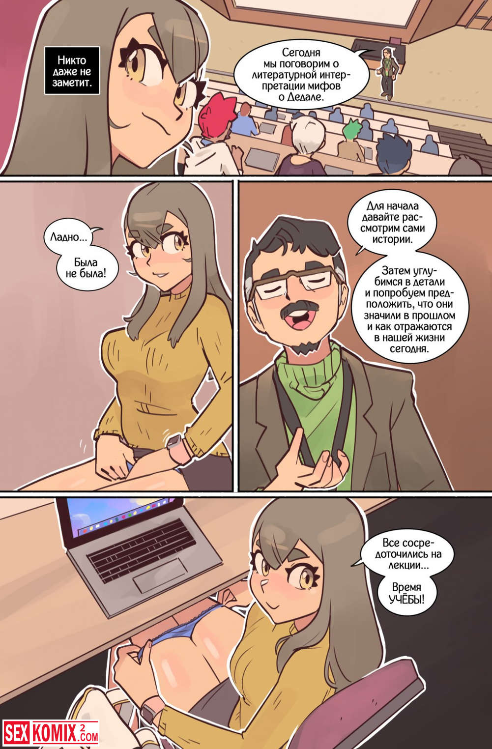 Порно комикс Перерыв в учёбе. Часть 2. Девушка студент занимается в библиотеке и её приходит сообщение с фото. Она решает немного отдохнуть и отправить в ответ свою голую грудь.