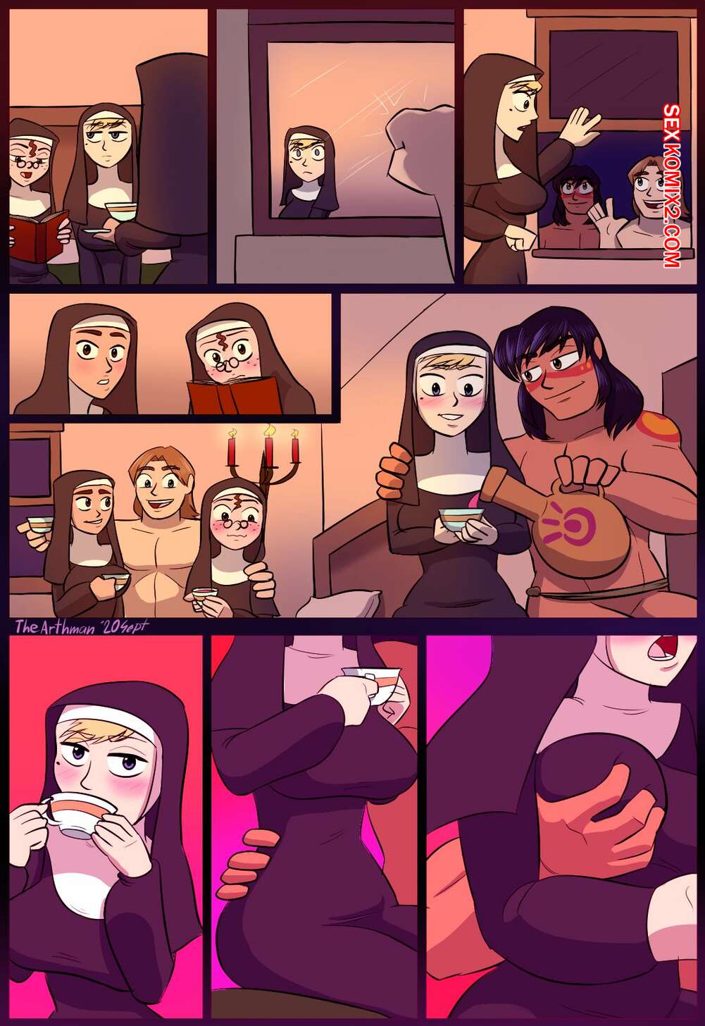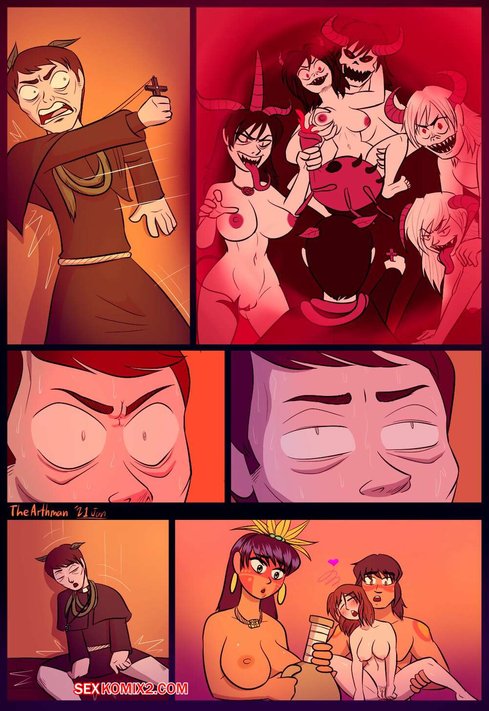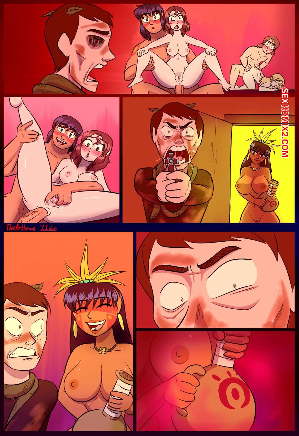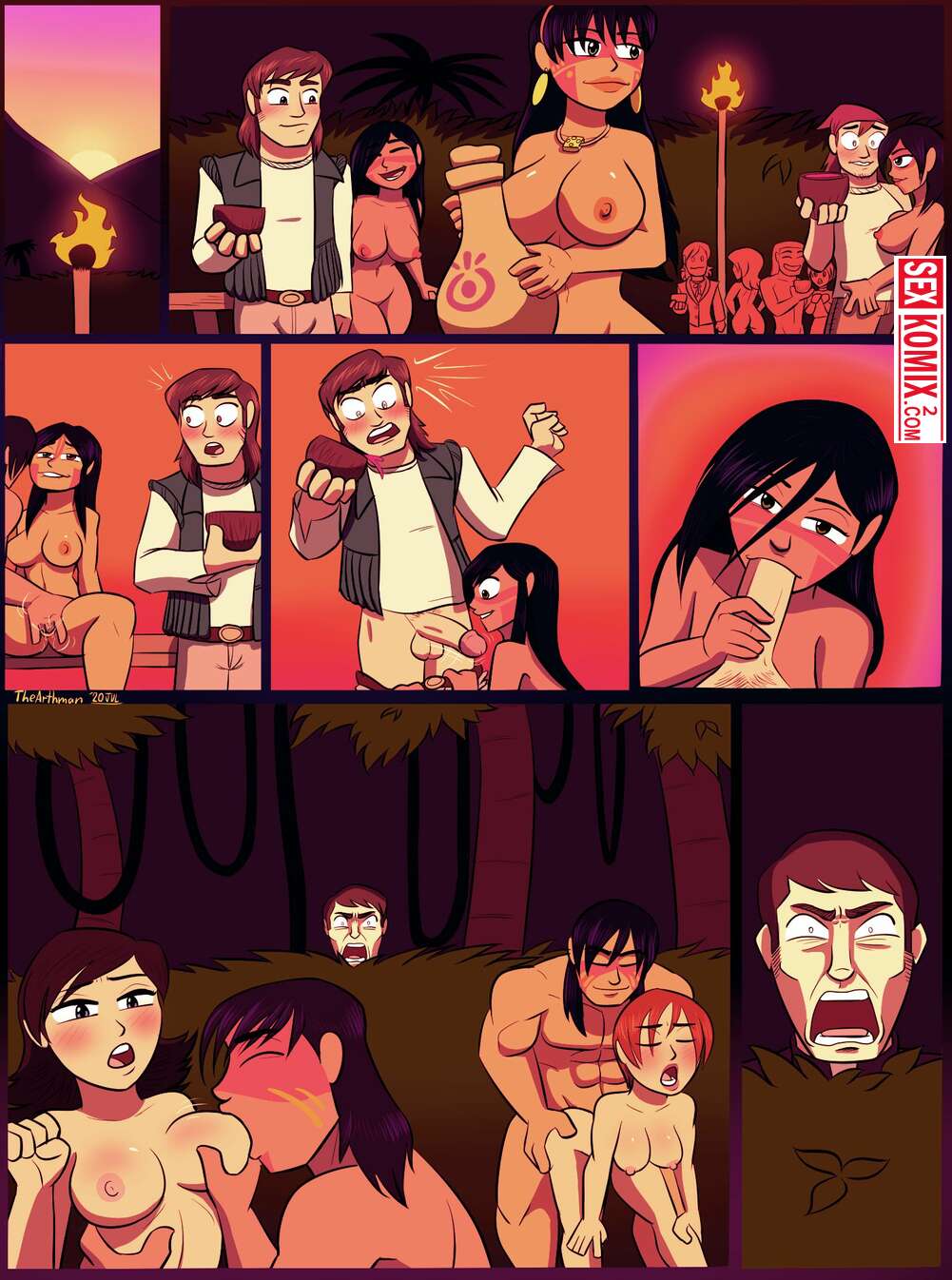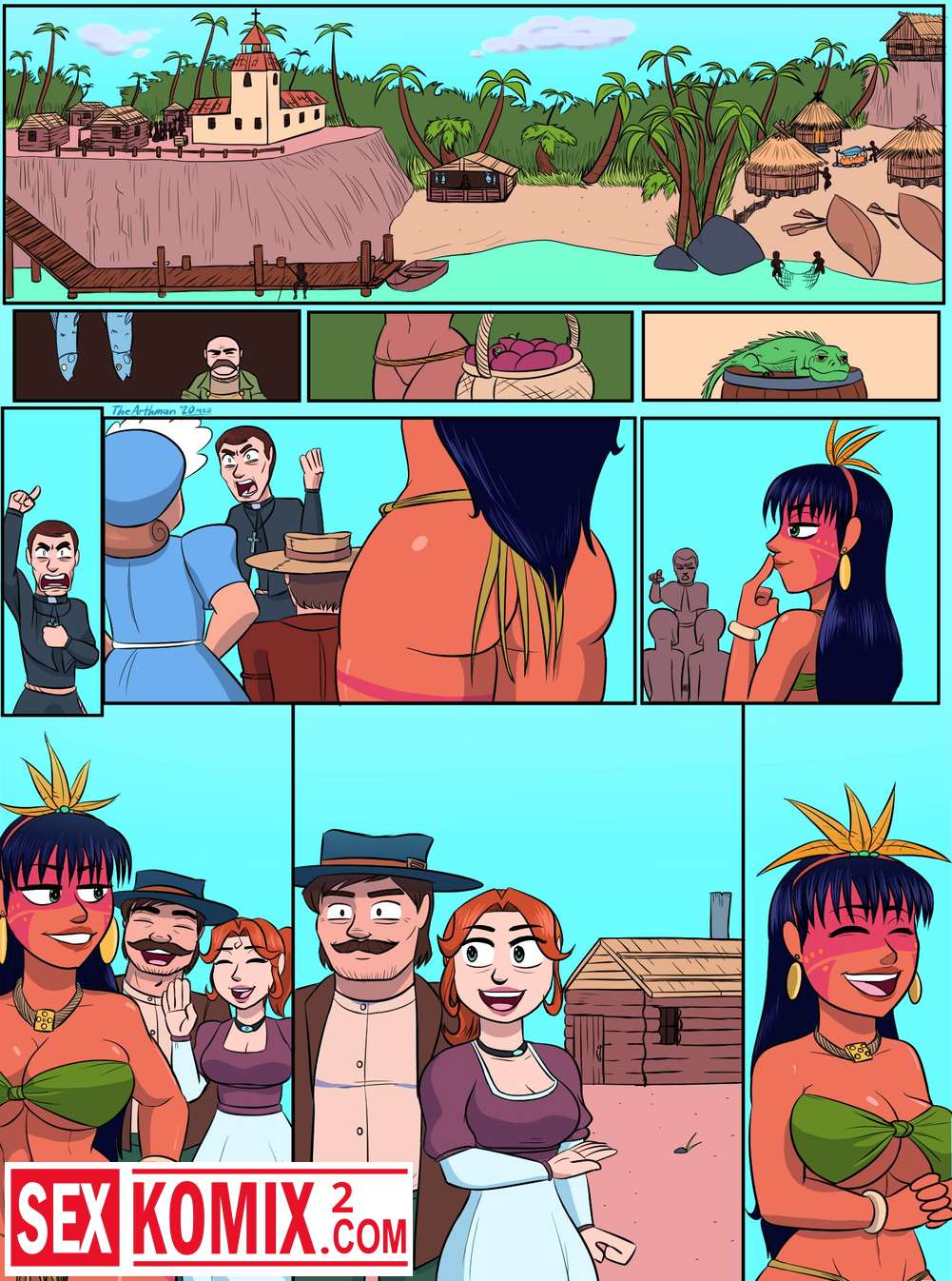 Порно комикс Преобразование. The Arthman. Когда новые жители приплыла на остров им нужно было как-то подружиться с местными и секс оказался лучшим решением.