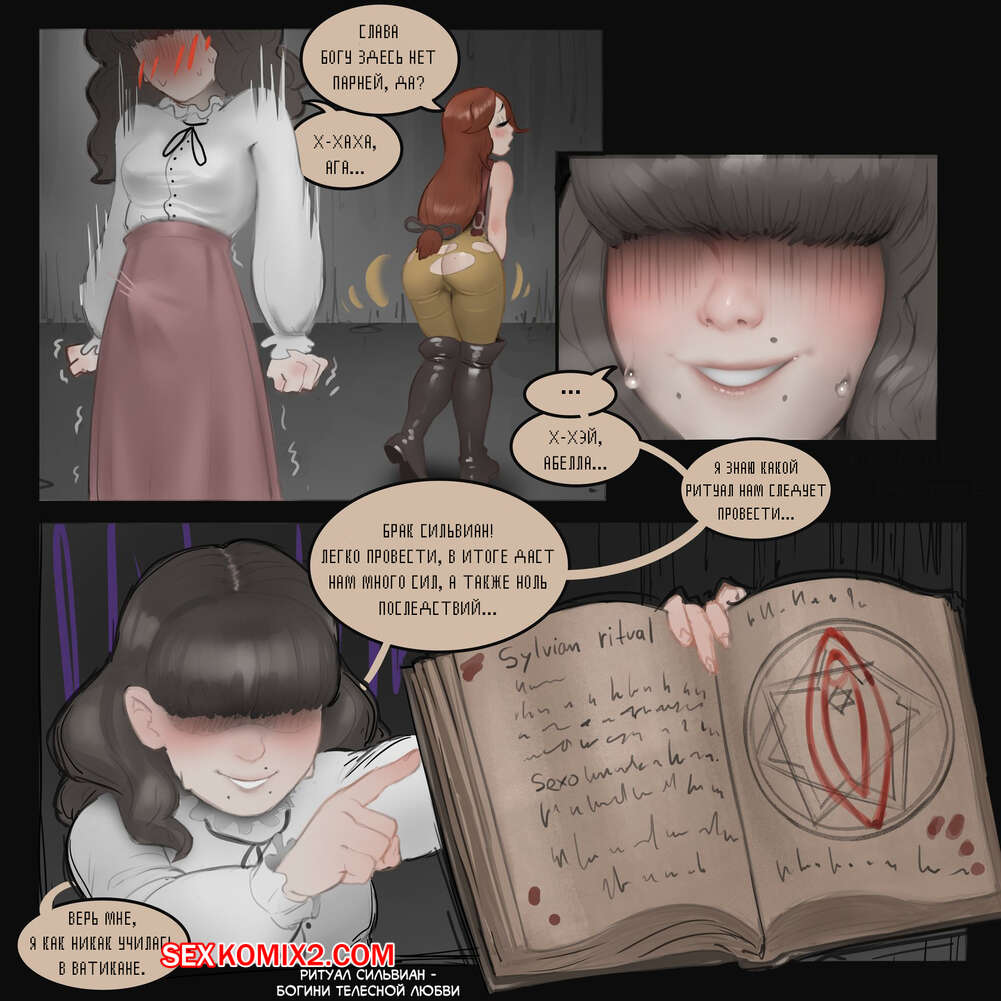 Порно комикс Fear And Hunger. Ритуал. The Ritual. Marinazanon Две сексуальные брюнетки проводили ритуал и брюнеточка решила помочь своей подруге в его выполнении. Она раздела девушку и хорошенько выебала ее своим большим хуем в задницу.