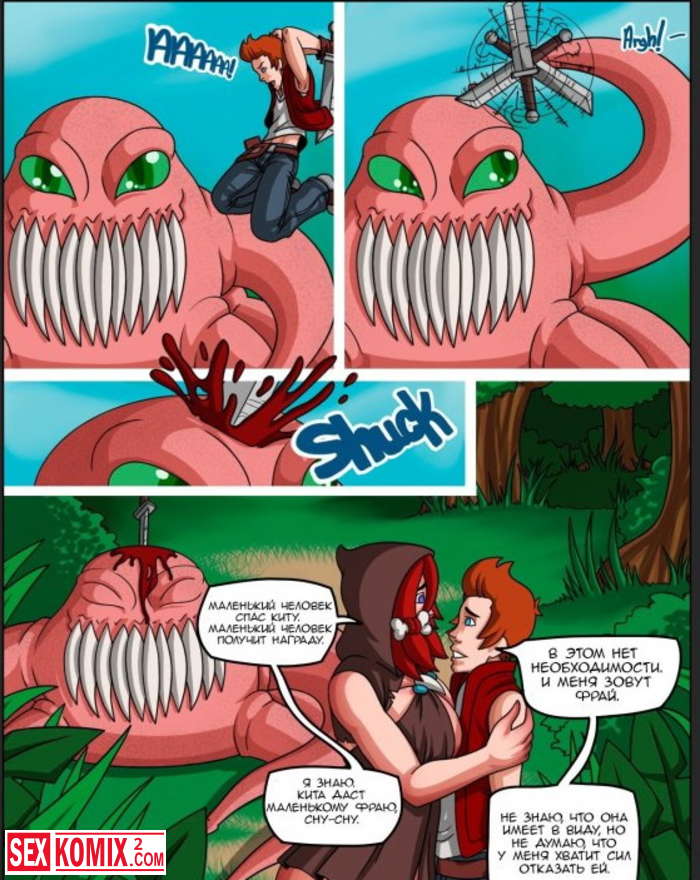 Порно комикс Фрай и дикарка Ките. Футурама. Приключения Фрая в альтернативной вселенной. Он попадает на чужую планету, но его спасает девушка.