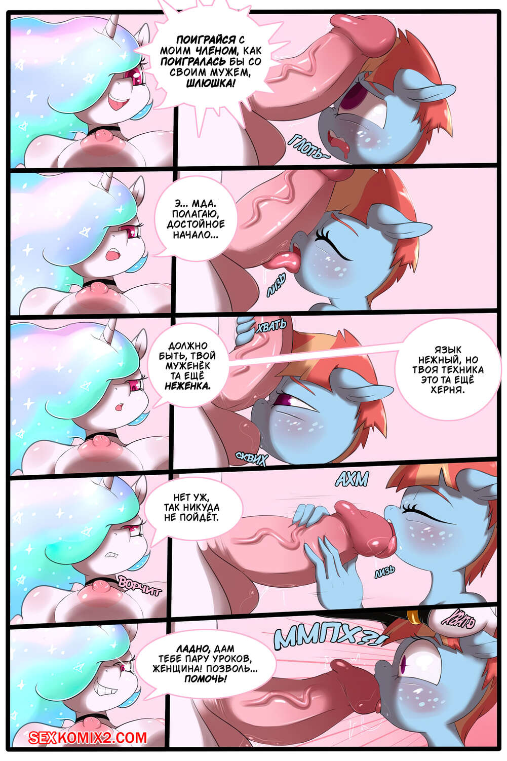 Порно комикс My Little Pony. Сделай это для неё. Часть 2. Saurian Сексуальная красотка пони с большим хуем была очень возбуждена и решила повеселиться со своей подругой. Он дала ей отсосать свой большой хуй, после чего выебала ее в попку.
