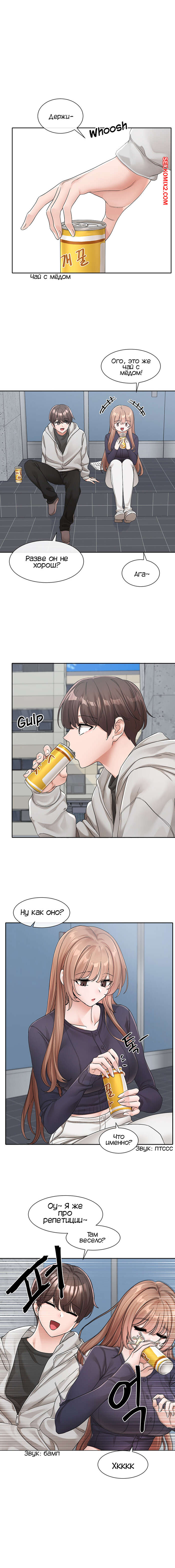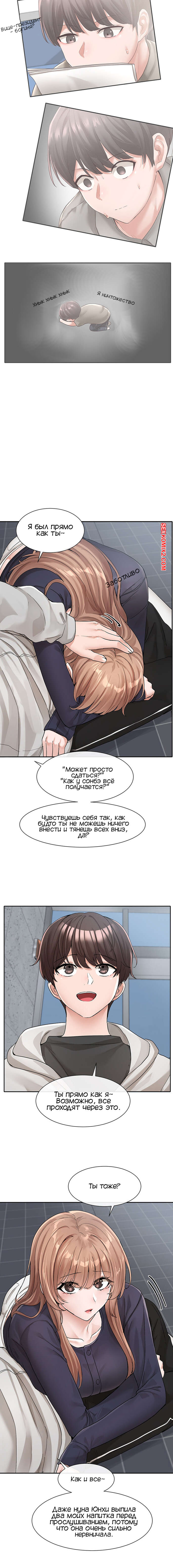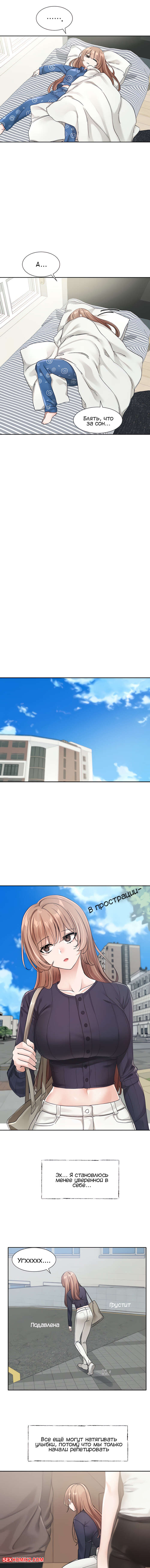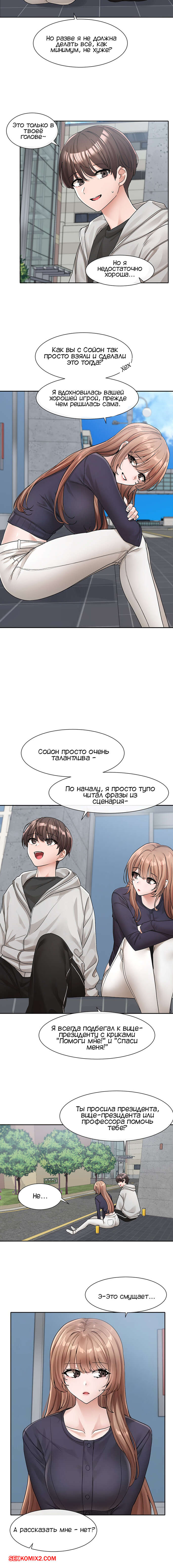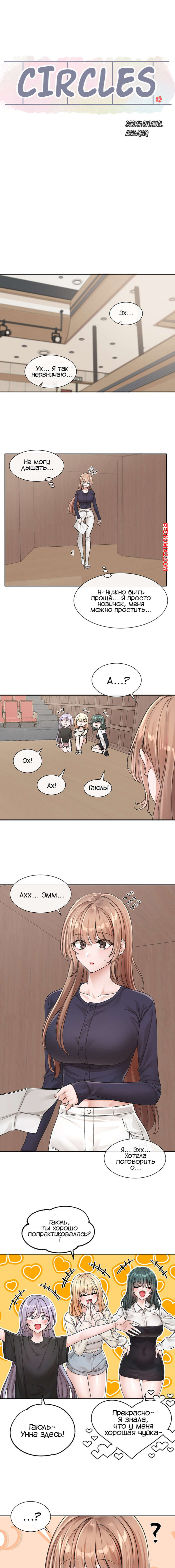 Порно комикс Театральный клуб. Части 124 и 125. Circles. Theater cociety Сексуальная брюнетка плохо себя чувствовала, поэтому она встретилась со своим дружком. Красотка стала ему жаловаться и легла парню на колени, от чего он сильно возбудился.