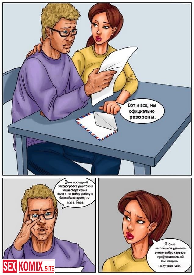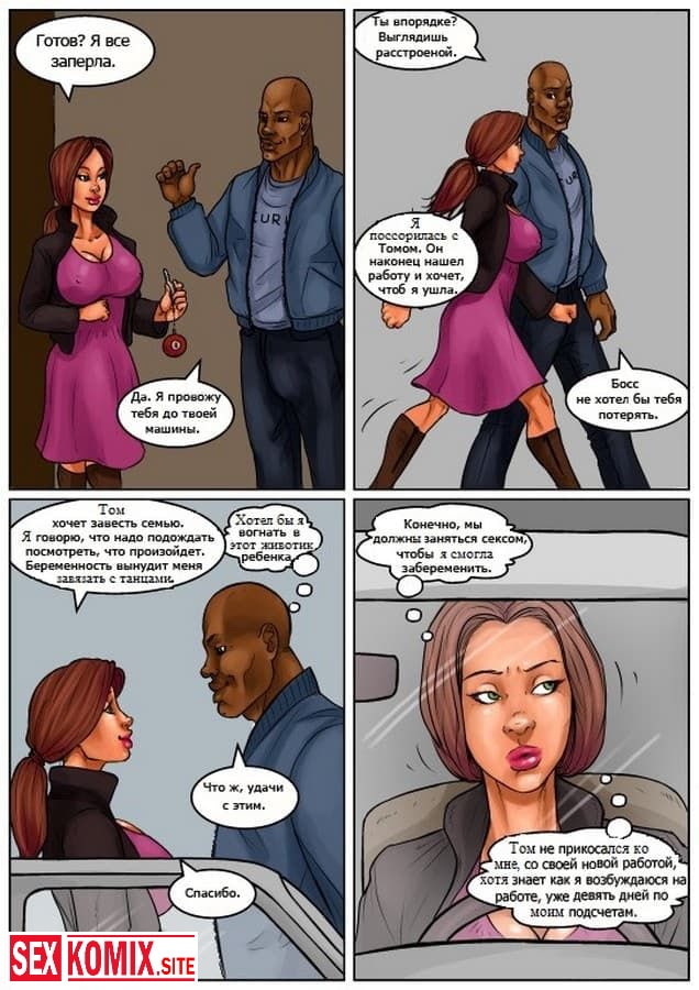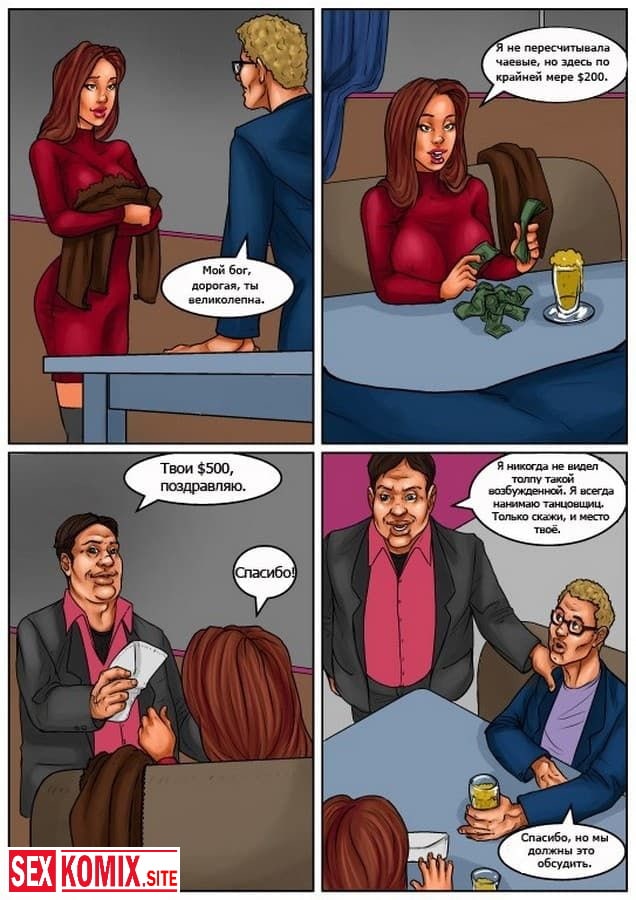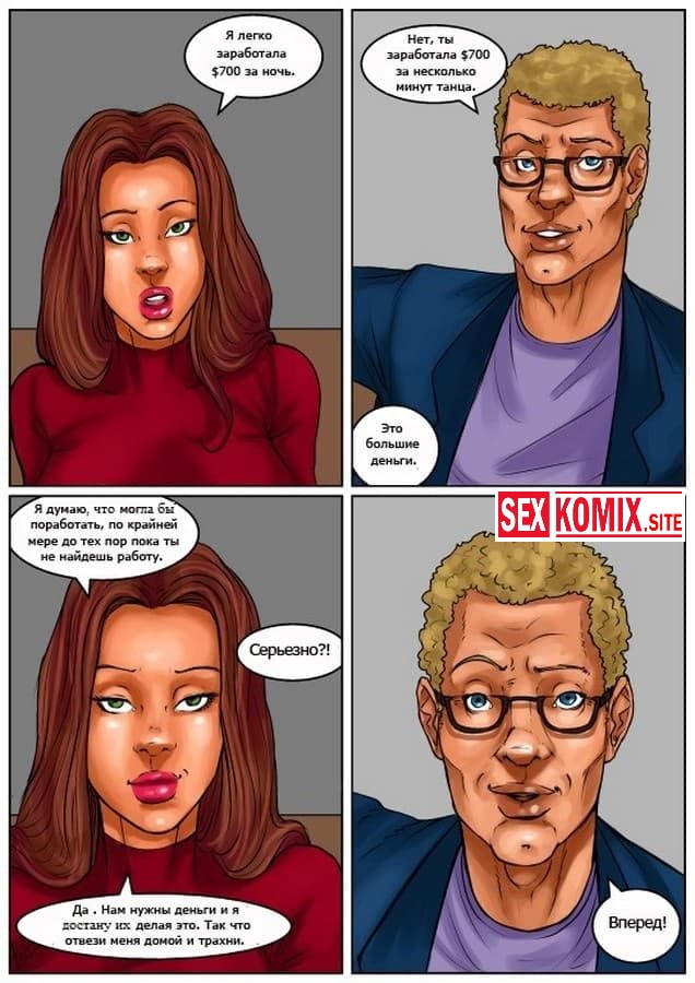 Порно комикс Жене приходиться раздеться. В этом комиксе для взрослых вы узнаете как сексуальной и стройной девушке пришлось отрабатывать долги своего парня занимаясь стриптизом. Эта работа привела её в мир разврата и секса, где красотка познакомилась с чернокожим вышибалой и бросила своего мужа идиота ради большого члена и накаченного тела черного парня.