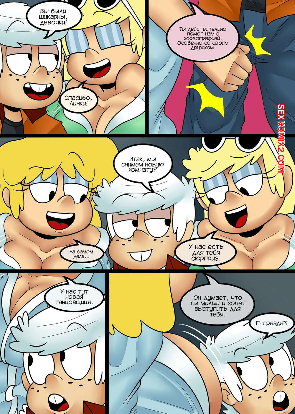 Порно комикс Громко в клубе. Часть 2. Louds in the club. Zaicomaster14 Линкольн помогает своим сестренкам становится лучше в танцевальной сфере, чтобы радовать клиентов и зарабатывать больше денег. Мама узнала о ночных похождениях парня и отправилась за ним, чтобы узнать что происходит.