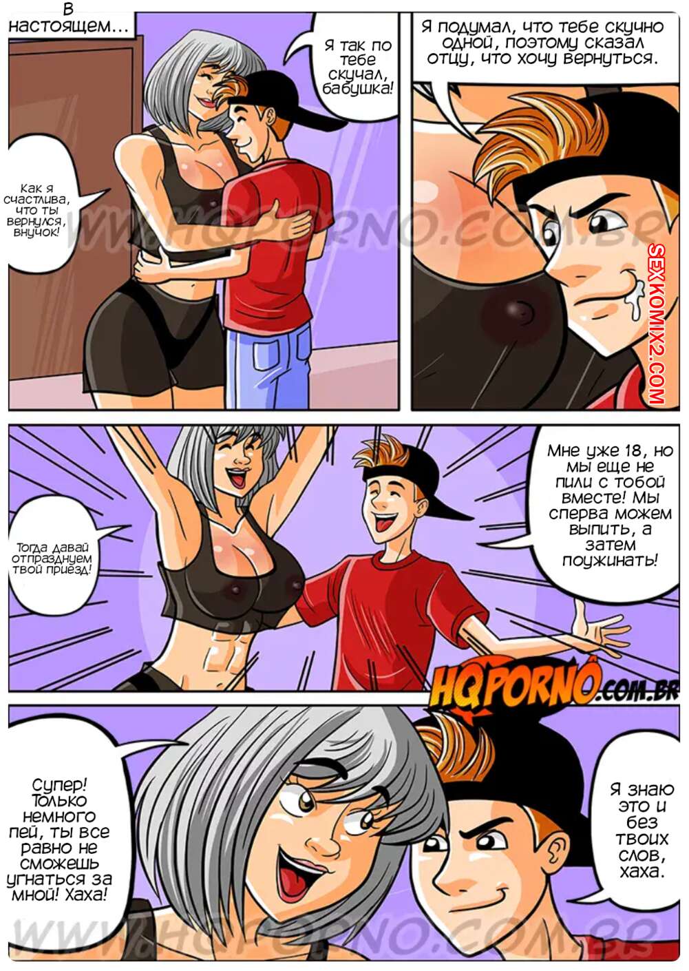 Порно комикс Ягодка опять. Часть 15. A vovozona. HQPorno Жизель максимально рада возвращениею своего внука. Они решили отпраздновать воссоединение и стали выпивать, после чего милфа дала парню себя хорошенько выебать.