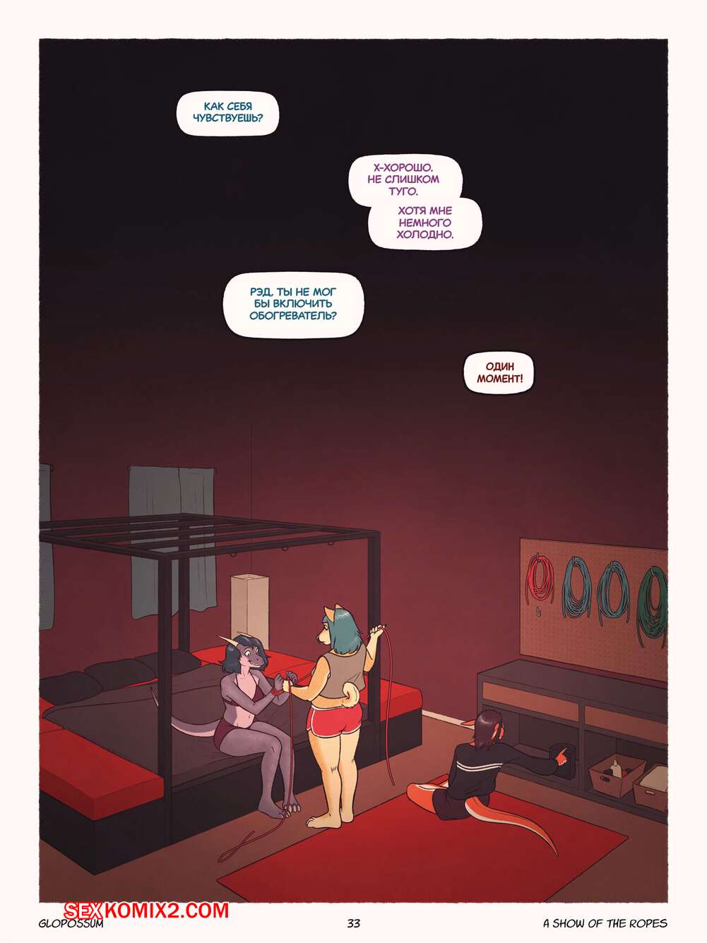 Порно комикс A Show Of The Ropes. В доме госпожи о верёвке не говорят. Glopossum Горячие красотки фурри с большими хуями любят трахаться. Они часто проводят время вместе, чтобы устроить друг дружке оральные ласки и хорошенько потрахаться, получая огромное удовольствие.