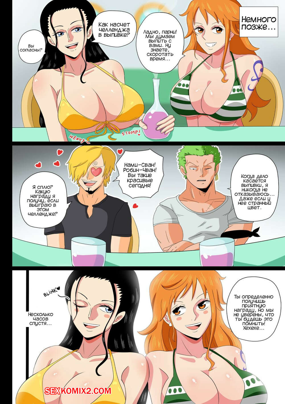 Порно комикс One Piece. Нами и Робин. Nami and Robin Comic. Phil96art Две горячие подруги отправились на пляж. Там они решили привлечь внимание симппатичных парней с помощью зелья, желая хорошенько поебаться поскорее.