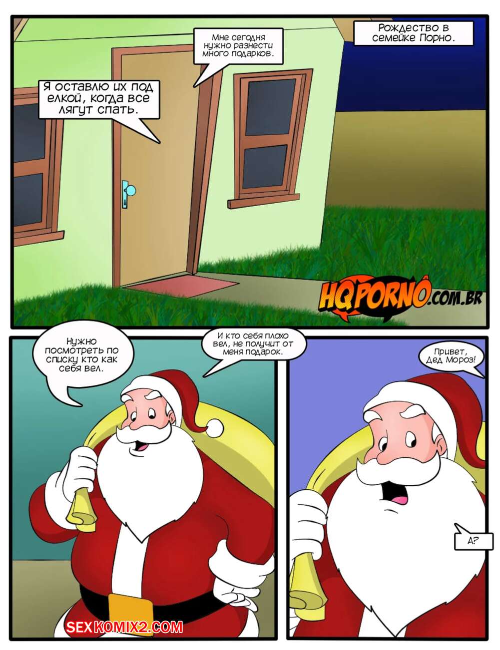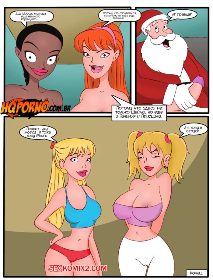 Порно комикс Семейка порно. Часть 4. Familia Foda. HQPorno Две горячие красотки застали Деда Мороза ночью и решили попросить его о подарках получше, чем куклы. Красотки разделись и отсосали большой хуй старика, после чего дали ему себя выебать во все дырочки.