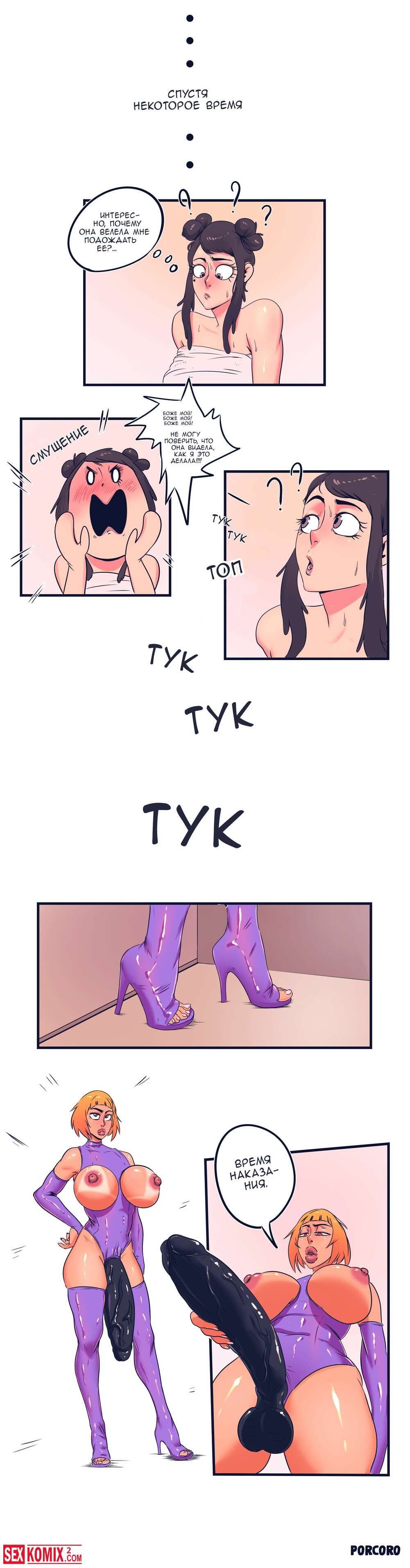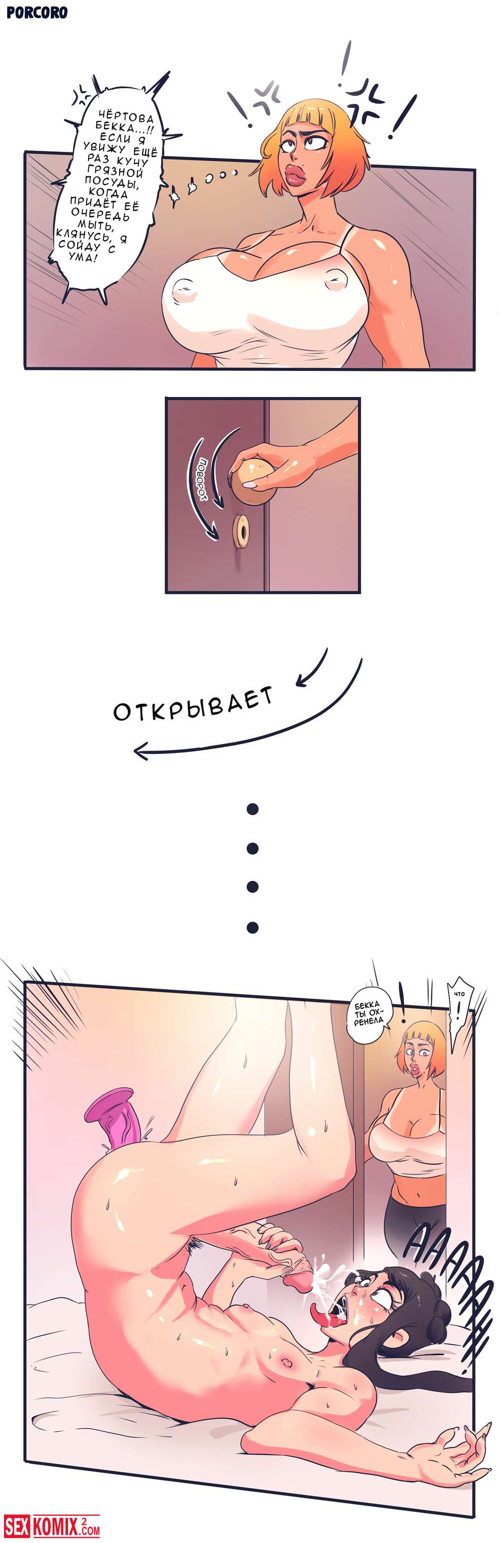 Порно комикс Бекка и ее соседка по комнате. Бондинка вернулась домой и увидела своего соседа транса с вибратором в заднице, и решила помочь соседу.