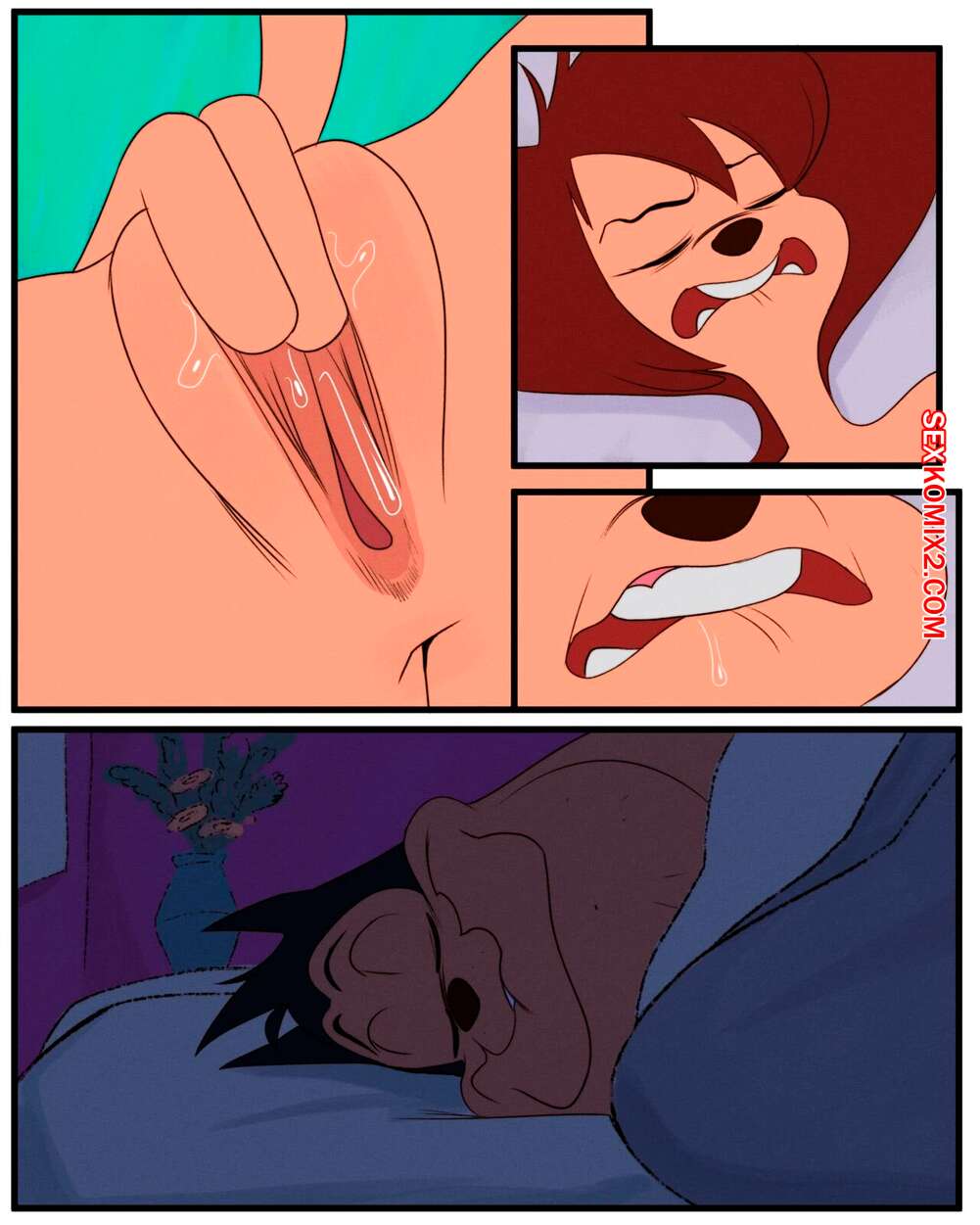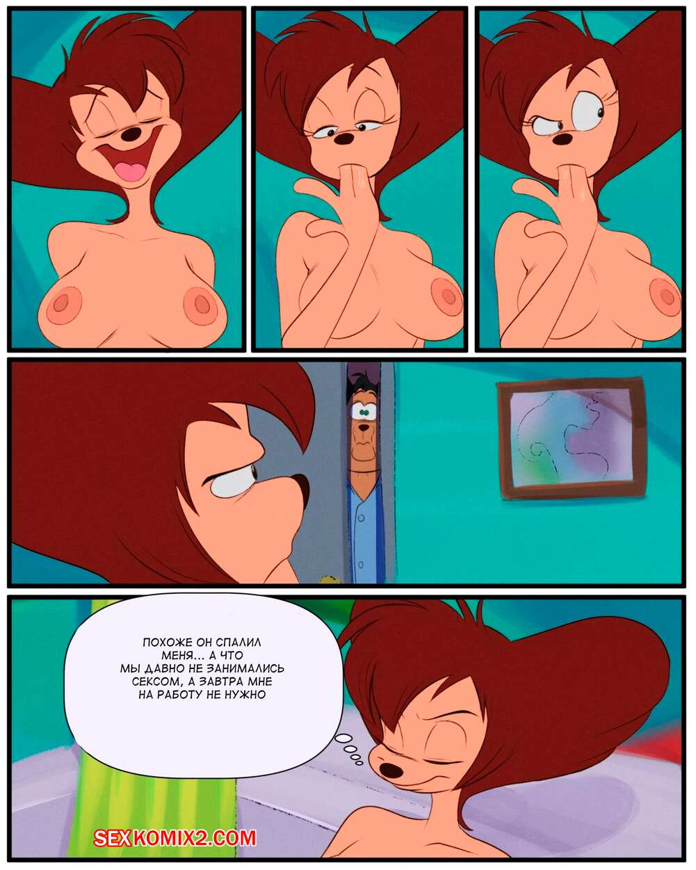 Порно комикс Goof Troop. Выходной Пег. Pegs Day Off. thehumancopier Сексуальная милфа брюнетка пошла ночью в ванну и стала ласкать свою пизденку. Ее за этим делом застал муж, поэтому красотка позвала его к себе, чтобы отсосать его член и дать ему себя выебать.