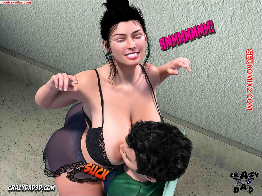 Порно комикс Помощь мамы. Часть 14. Moms Help. CrazyDad3D Горячая милфа Нэнси осталась наедине с Ахиллесом. Она разделась и дала парню поласкать ее большие сиськи, после чего встала на колени и отсосала его большой хуй.