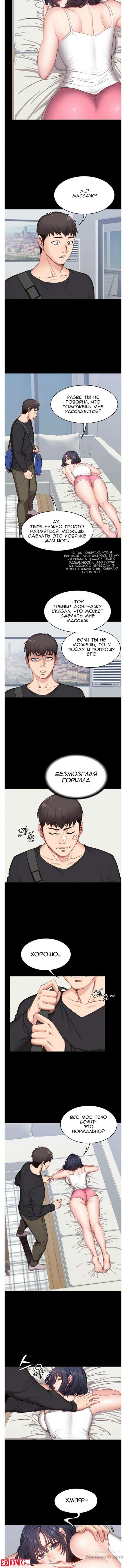 Порно комикс Фитнес. Части 3 и 4. Девушка тренер сделал парню не однозначный намек и он весь вечер думал, что она хочет с ним секса.