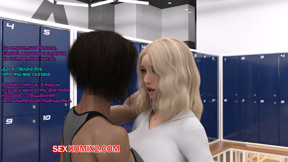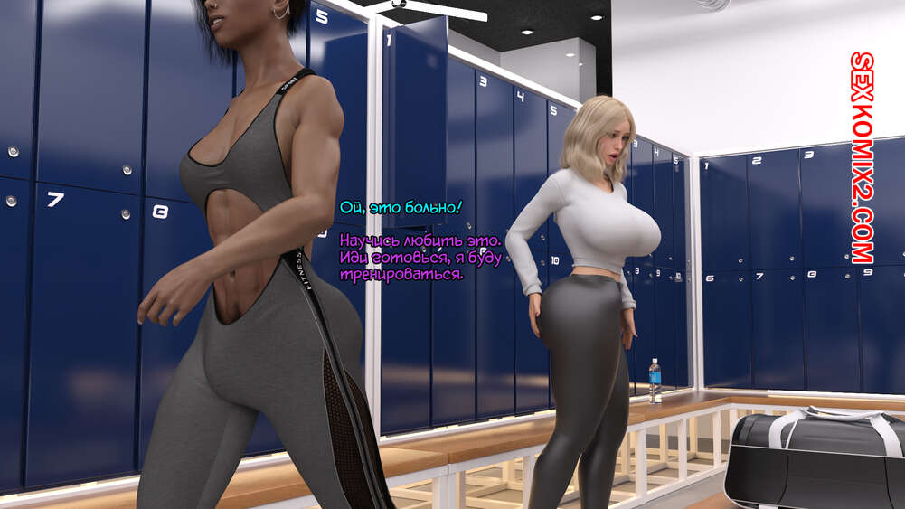 Порно комикс Дополнительная тренировка. Часть 1. Serge3dx Сексуальная блондинка пришла на тренировку в спортзал. Там она привлекла внимание темнокожей девушки с большим хуем и пошла принять душ вместе с ней, где блондиночка отсосала ее член.